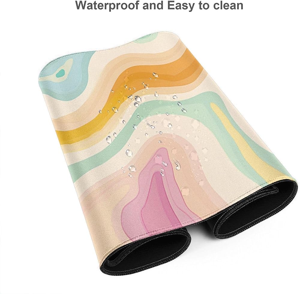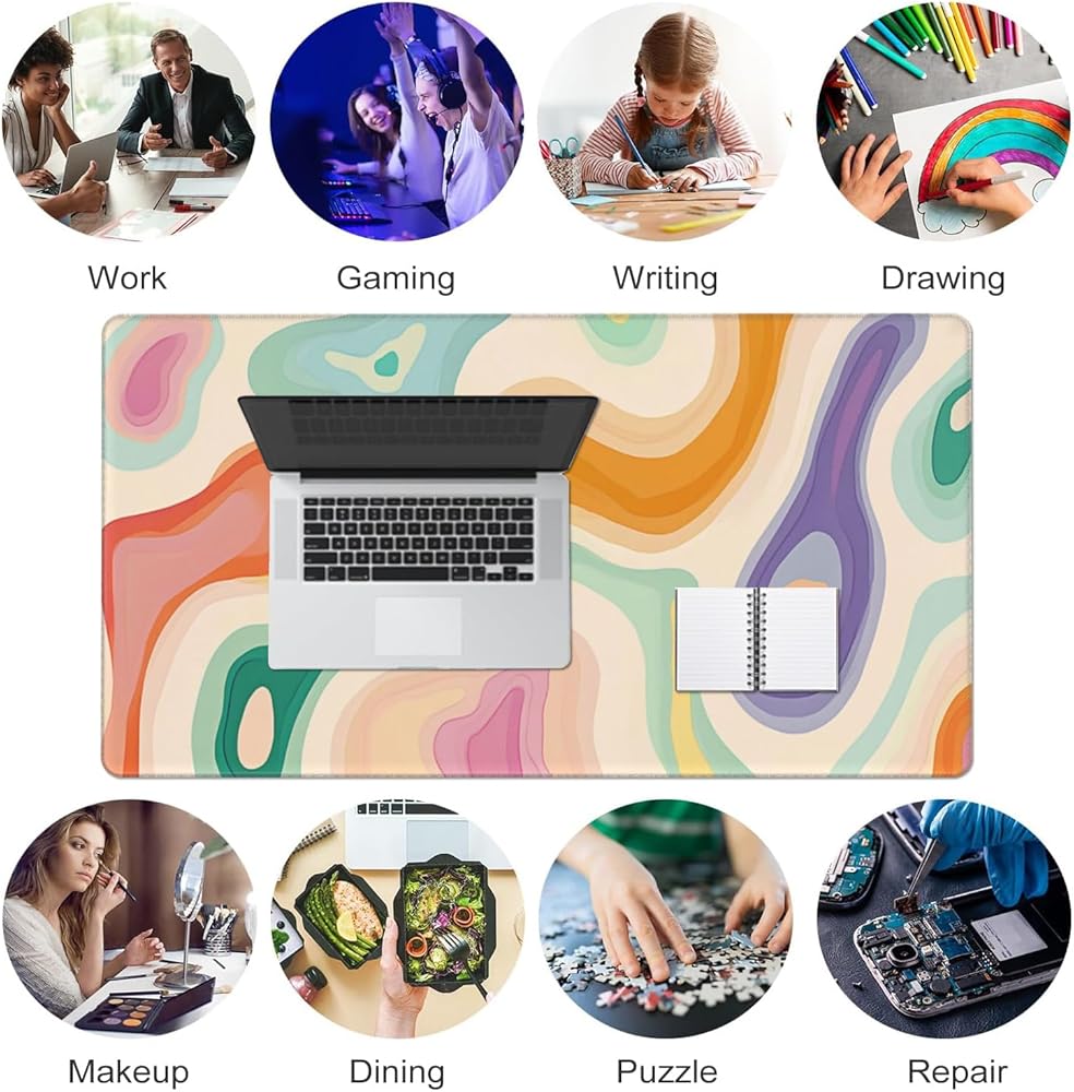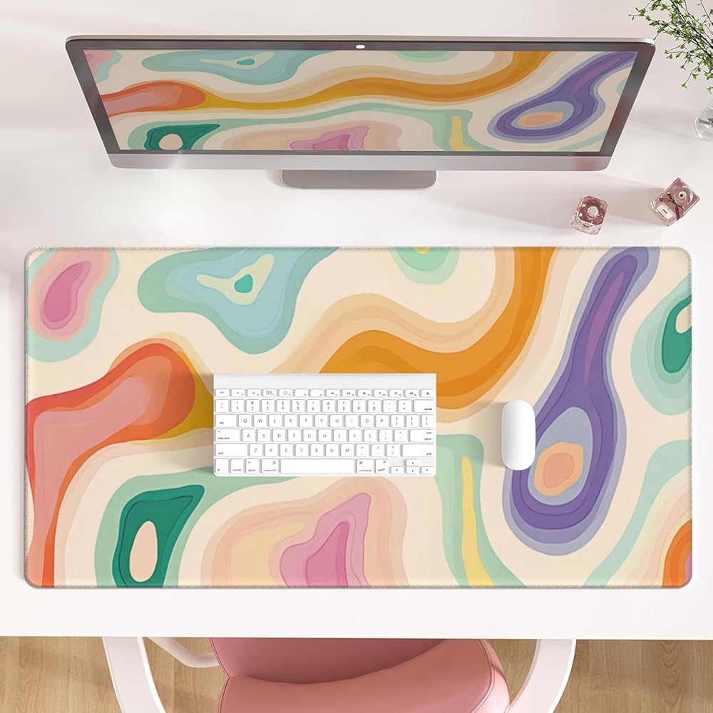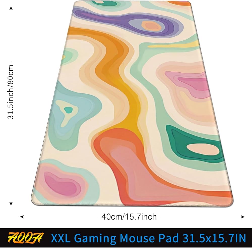 AQQA Abstract Desk Mat Desktop,Gaming Mouse Pad Long Mouse Pad Large Desk Mat 31.5X15.7 Inch Mousepad with Non-Slip Base Stitched Edge Keyboard Mat for Gaming Office, Abstract Modern Colorful