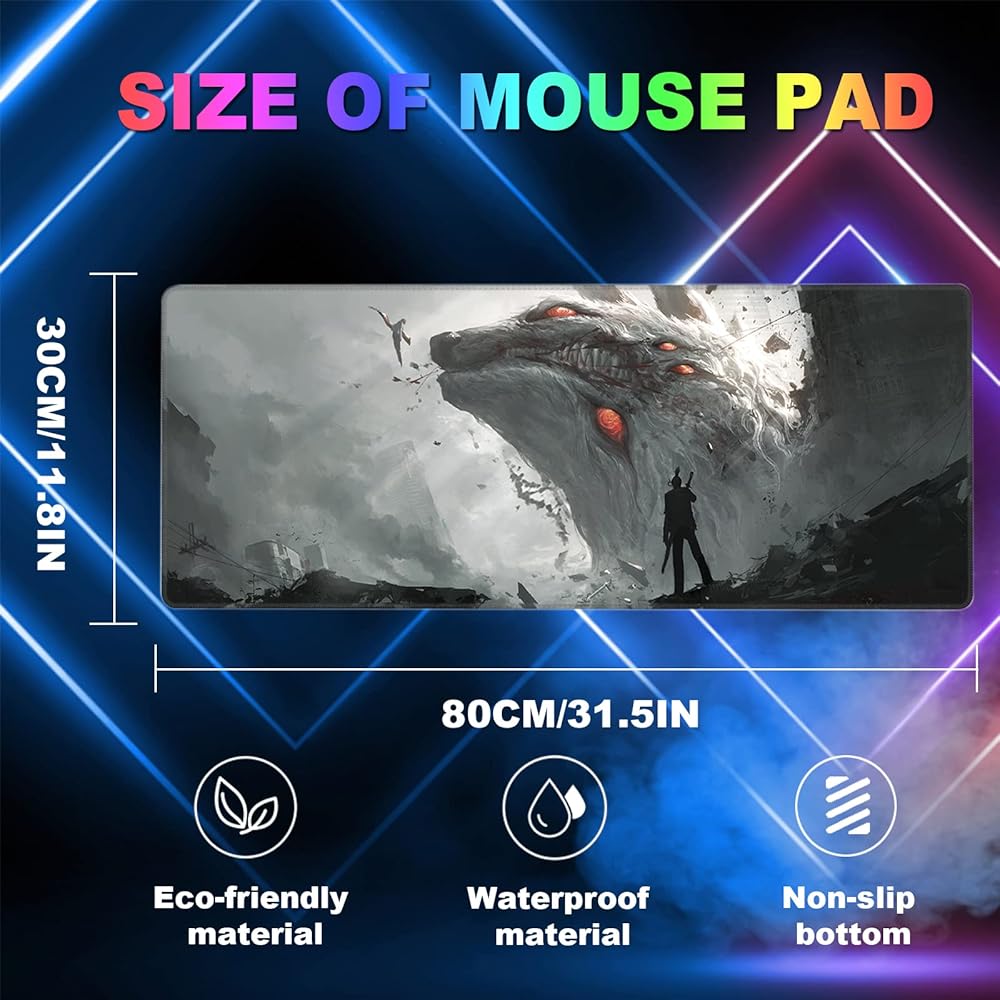 【LARGE AND PERFECT SIZE】RGB Mouse Pads Measure Size is 31.5x11.8 Inches / 800x300 mm.this mousepad will cover the area for a full-sized keyboard and mouse, Personal Computers, Consoles, Mechanical Keyboard, Mini Keyboards And Mice.