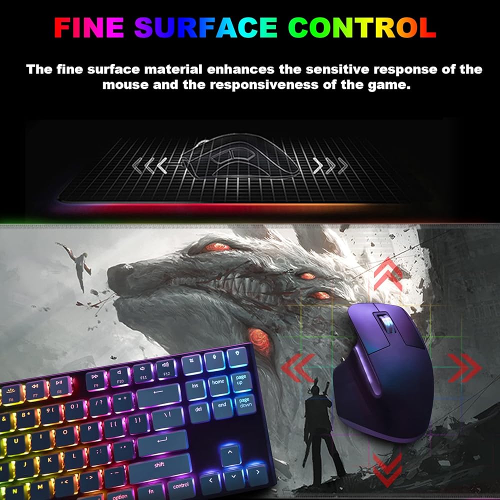 【13 LIGHTING MODES】This Large mouse pad features 13 lighting modes, Powered By A USB Cable And The Edge Is Designed With Super Glowing Fiber.Providing stunning visual effects and creating an immersive game environment.You can create a cool and colorful world of games on your desktop