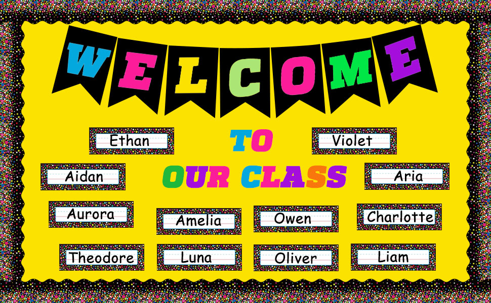 Classic black & white color background along with contrasting dots and stars, give these confetti borders a modern charm. Make your bulletin boards pop!