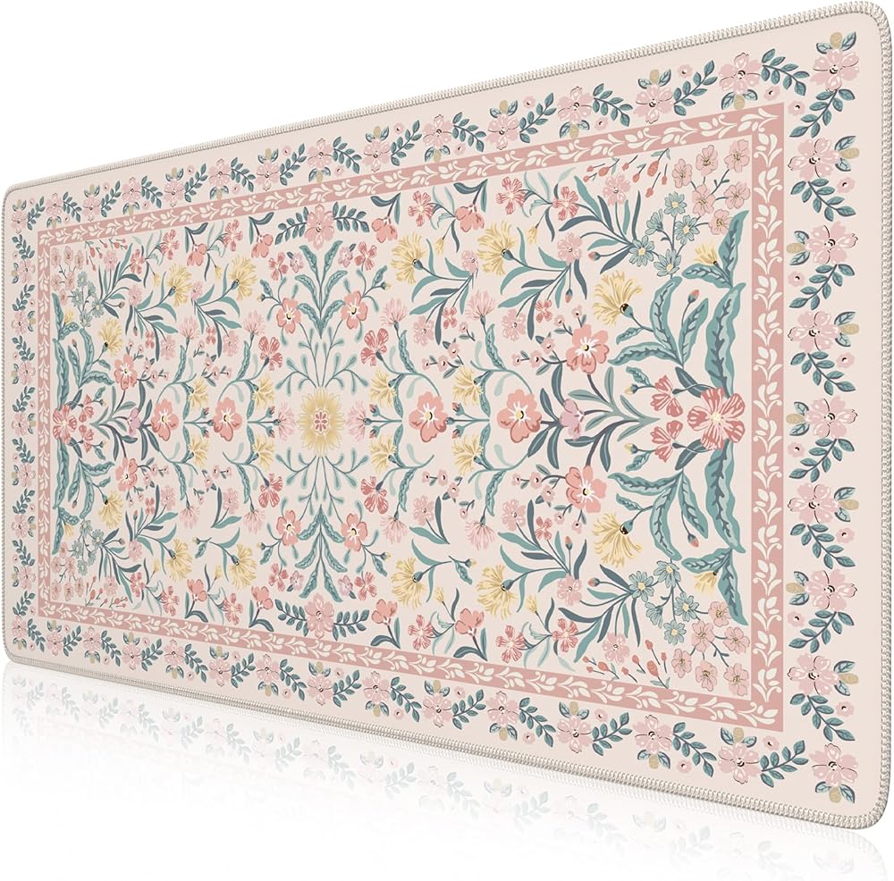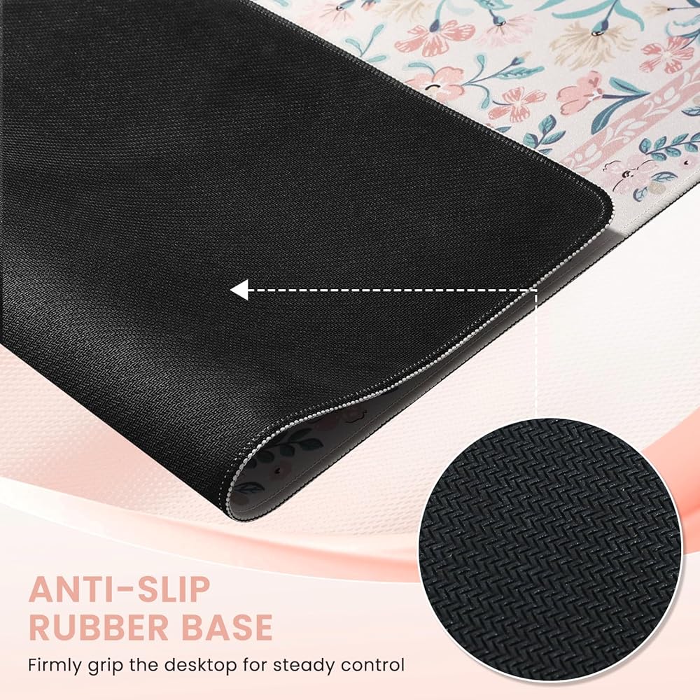 iCasso Pink Floral Desk Mat, Desk Pad, XXL Large Mouse Pad, Anti-Slip Big Mousepad with Stitched Edges, Computer Mouse Pads for Desktop for Women(Pink)