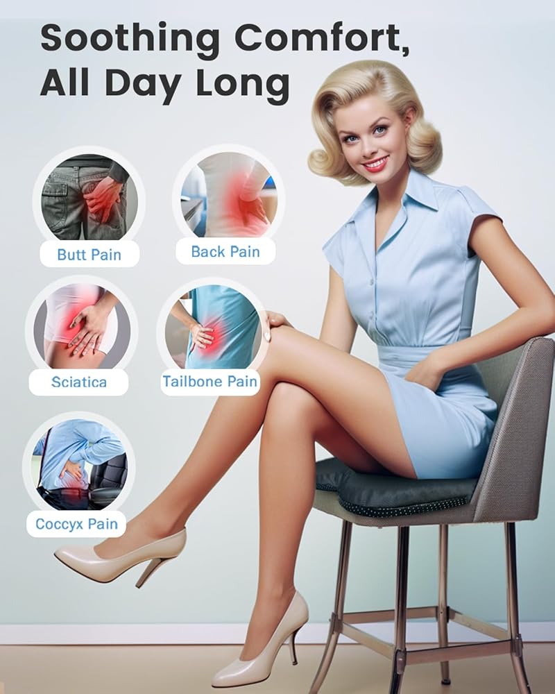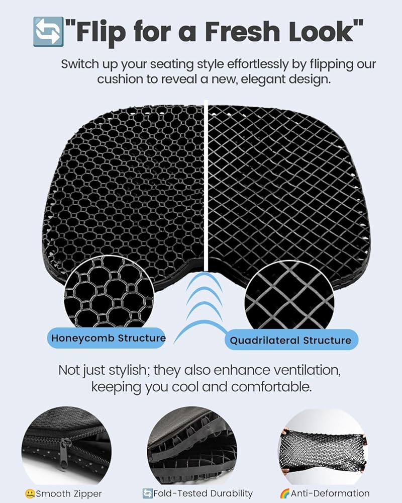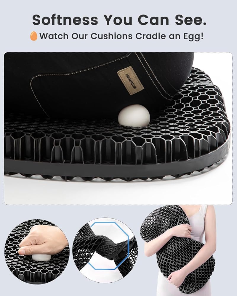 💟【RELAX AND FOCUS】 With unique egg cushion design, we give you double thickness support, which makes it a high-quality gel cushion. It fits 99% of chairs, , improve your comfort.