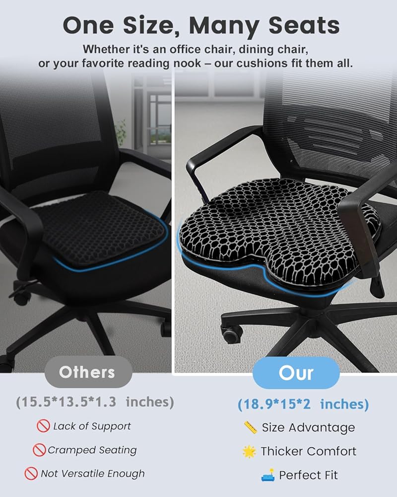 Gel Cushion, Seat Cushion for Desk Chair, Chair Cushion for Back Pain, Coccyx Cushion, Office Chair Cushion, Seat Cushion for Car, Wheelchair Cushions. Computer Chair Cushion, Chair Pad