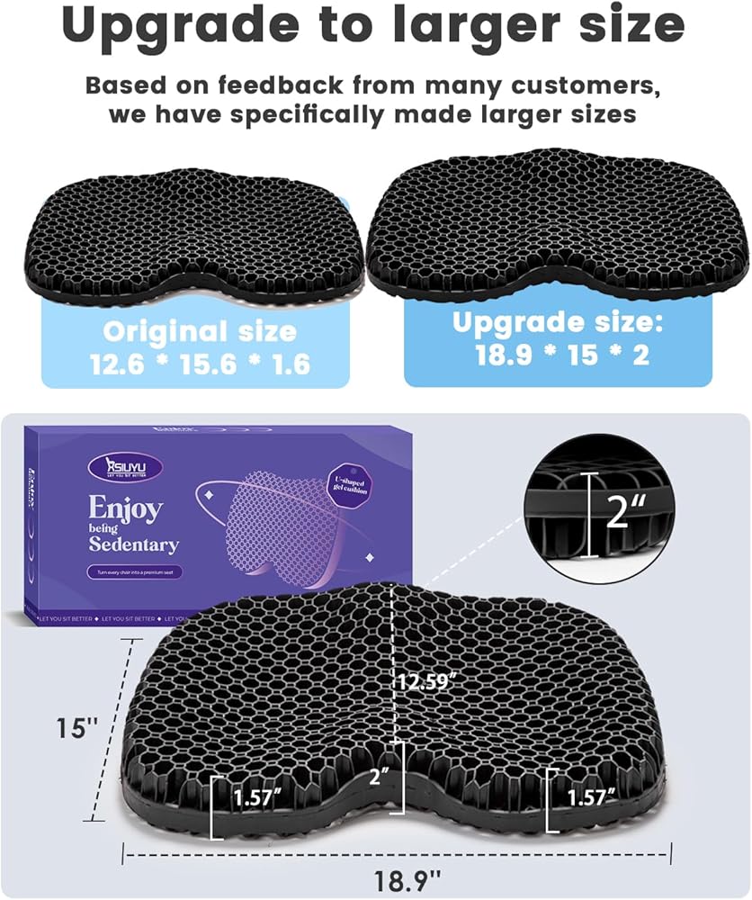 💟【EXCELLENT ALTERNATIVE】This large, high-quality elastic gel pillow measures 18.9 x 15 inches, with a 2-inch double thickness for can provide comfortable experience, which can increase the time spent sitting for long periods of time. It is conforms to the shape of your hips, thus providing soft support.