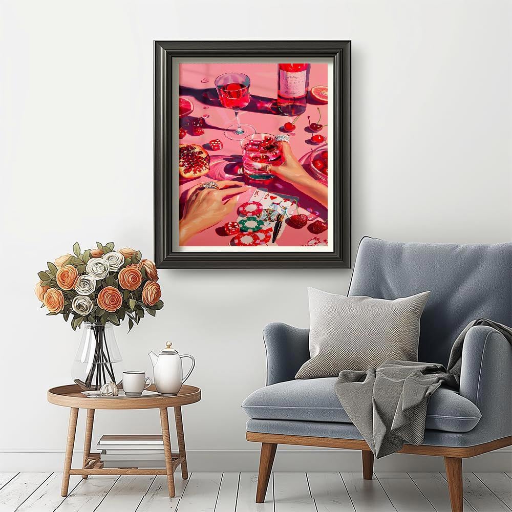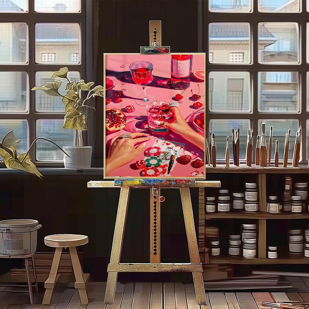 mjcakrn Party Vintage Paint by Numbers for Adults Beginner, DIY Acrylic Retro Funny Poker Easy Adults Paint by Number Kits, Watercolor Paint by Numbers Kits on Canvas for Home Wall Decor 16x20inch