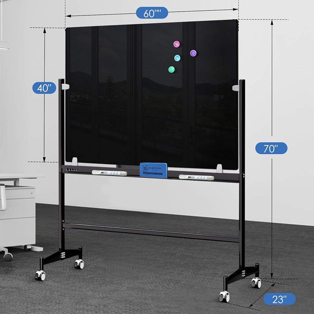 ✔️【ELEGANT AND MODERN DESIGN】- The glass dry erase boards feature magnetic surfaces, which allow you to easily organize accessories. Please note: we recommend use the Glass Board Magnets for best results use magnetic glass board. Our mobile black glass whiteboard is excellent from design to production, elevate your office with this elegant magnetic glass blackboard, It is suitable for offices, schools, conference rooms, etc.