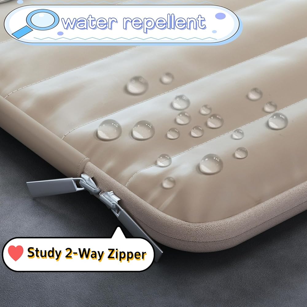 【15-16 INCH LAPTOP SLEEVES】FITS ALL 15 INCH & MOST 15.6, 16 INCH LAPTOPS: Internal Dimensions: 14.75”x10.25.”x0.75”. External Dimensions: 15”x10”x2”. It can be used as an Apple MacBook case, Chromebook case, HP laptop cover, a Dell laptop cover, or HP 15.6 laptop case 【Good Quality】Constructed from Sturdy, soft-touch polyester material, featuring a layer of polyester foam padding and a plush fleece fabric lining. Designed to protect your laptop from bumps, shocks, and accidental scratches. 【PUFFER DESIGN】Featuring a trendy and adorable cute puffer design, this sleeve offers both style and comfort. It's the perfect combination of functionality and fashion, making it not just a protective case but also a stylish accessory for your laptop! 【FITS IN YOUR BAG】This padded laptop sleeve compresses to easily slide into your bag or laptop backpack. Suitable for those seeking a stylish MacBook Pro case, MacBook sleeve, HP laptop sleeve, or any Dell laptop accessory for work or school. 【Compatible with】[Apple] MacBook Pro 15"16"; [Dell] Latitude 7640, Inspiron 16, Inspiron 16 2-in-1, Inspiron 16 plus, New Inspiron 16 plus, Vostro 16, New Vostro 16, Vostro 7620, Precision 7670, Precision 7680; [HP] Chromebook 15.6" 15b, Victus 15 2022, Victus 16, VICTUS 16 2023, OMEN 16 2023, OMEN 16 2022, Spectre x360 16; Yoga 7, Yoga 7i, ThinkPad T16 Gen 2, ThinkPad T16, ThinkPad P16v, ThinkPad P16s Gen 2, ThinkPad P15v Gen 3, ThinkPad P1 Gen 6, ThinkPad P1 Gen 4, ThinkPad E16 Gen 1, ThinkPad E15, IdeaPad Flex 3i Chromebook, IdeaPad Flex 5, IdeaPad Flex 5i, IdeaPad Pro 5i, Legion Pro 5 Gen 8, Legion Pro 5i Gen 8, Legion Pro 7i Gen 8, Legion Slim 5 Gen 8, Legion Slim 5i Gen 8, Legion Slim 7 Gen 8, Legion Slim 7i Gen 8, LOQ 15APH8, LOQ 15IRH8, Slim 9i, ThinkBook 16p Gen 4; 【24 Hours Customer Service】Any question about BGGCHEECA product, please contact us via E-mail first time. We have a replacement with 12 months and professional customer service support.