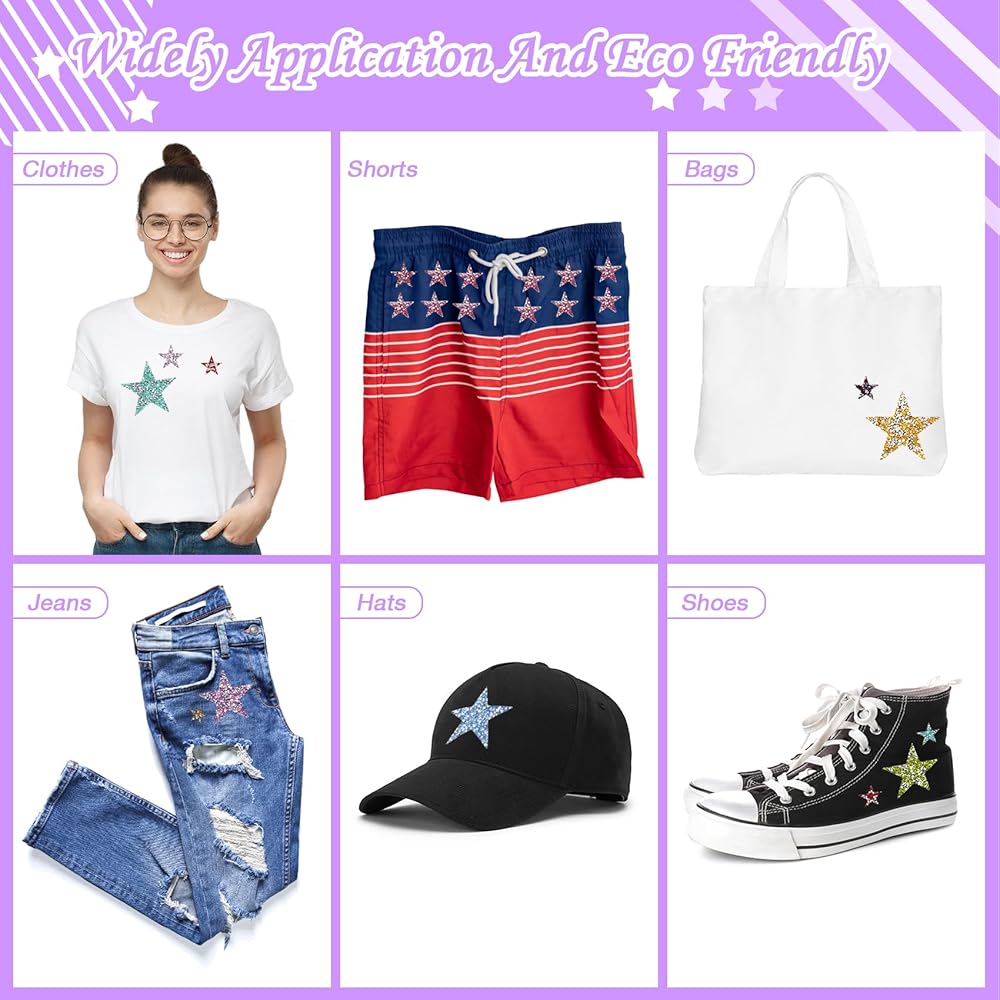 Shiny Clothing Decoration: Iron on patches are practical in your handmade projects, widely used in hats, backpacks, jackets, jeans, coats, T-shirts, pants, hats, curtains, scarves, duvets, clothing, bags, fabrics, etc., simple and classic, easy to use. Star patches contain classic colors, easy to match with different colors and styles of clothes, suitable for DIY ironing on clothes, handmade bags or other art projects