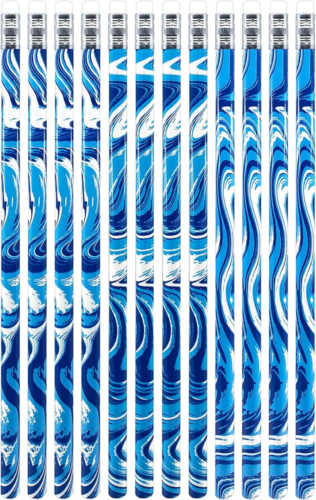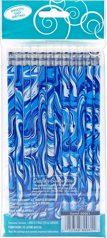 Presenting a fun and colorful world of drawing, say hello to Scribble Stuff's 12 count Fashion Pencil Pack in Blue Marble. This trendy pencil pack comes with 12 premium pencils that are beautifully designed with a unique blue marble style. They are ready to bring life to any piece of paper. This pack is the perfect tool for children to explore their creativity, write down their thoughts, or even do their homework in a more enjoyable way. Each pencil in the pack is made with superior-quality graphite that ensures a smooth writing and drawing experience. Scribble Stuff Blue Marble pencils are non-toxic, easy to erase and feature latex-free erasers. Each pencil is durable, graphite doesn't break easily, an eraser is secured at the top for easy erasure. Scribble Stuff 12 count Blue Marble Pencils make a great addition to birthday or holiday gifts, and are perfect everyday use for journaling, finishing homework, or writing notes! This fashion pencil 12 pack makes the perfect gift for back to school for any young writer. Featuring great quality, Scribble Stuff 12 count pencils can be used for party favors as well. Bring an extra touch of fun to the art of writing and drawing!