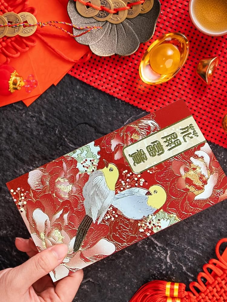 New Year Red Envelope: 12 Chinese style pearl gilt lucky money envelopes with different exquisite patterns, including bird, Chinese lion, phoenix, goldfish, etc, contains strong traditional Chinese culture