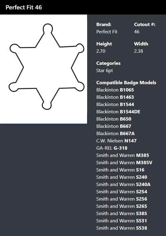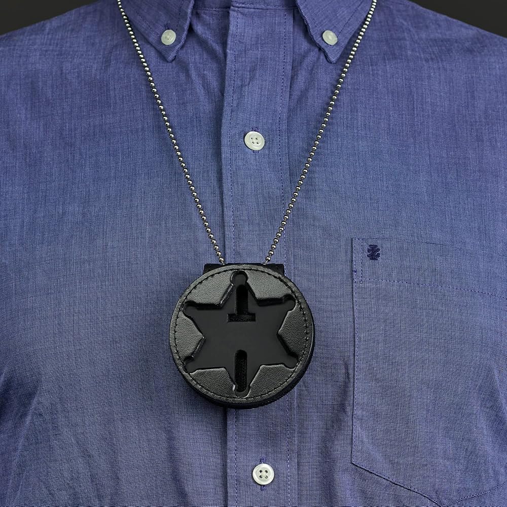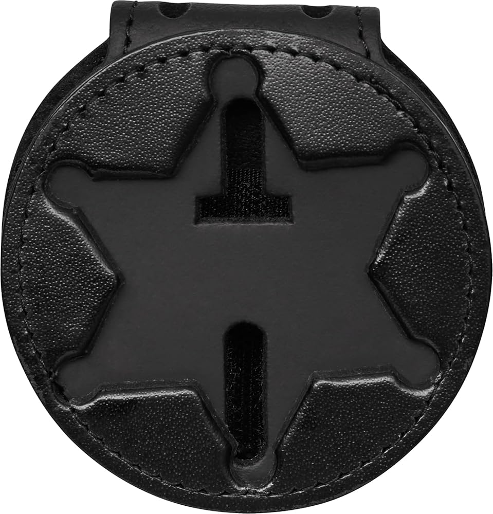 Perfect Fit 6 point star NY County Sheriff police badge holder constructed from 100% genuine drum dyed black leather. Use the sturdy metal clip to wear as a belt badge holder or use the included 30 inch chain to wear around neck. Inner pocket holds badge holder chain when not in use. Badge holder for law enforcement is professional duty quality and holds badge securely with a hook and loop closure. Fits most 6 point star badges. Not for all 6 point star badges. Compatible badge models: Blackinton B1065, B1463, B1544, B1544DE, B650, B667, B667A, Smith & Warren: M385, M385V, S16, S240, S240A, S254, S256, S265, S385, S531, S538, C.W. Nielsen N147, GA-REL G-318.