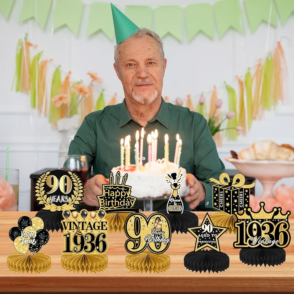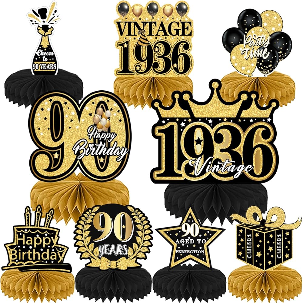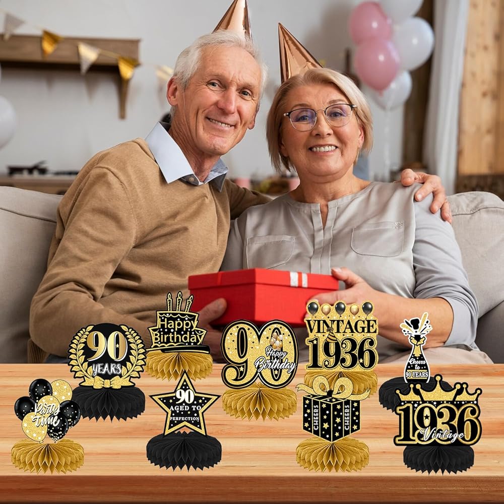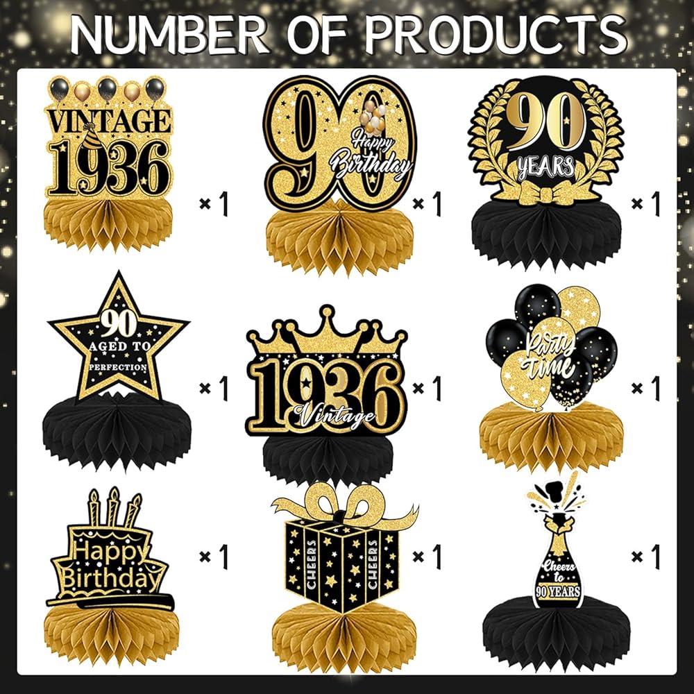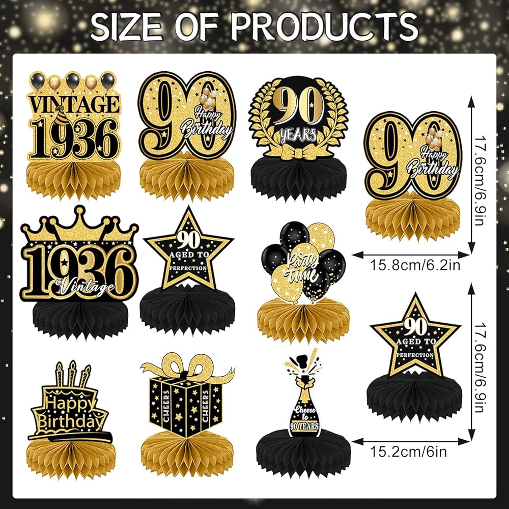 Usage: A set of decorations for multiple purposes. It can be used for a 90th birthday party, a 90th anniversary, a great birthday gift for old friends, and the best table decoration for yourself on the 90th.