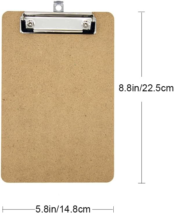 Wood Clipboard 8.74x5.82in, Memo Size A5 Clipboards Wooden Heavy Duty Clipboard with Low Profile Clip for Office, Teacher, Classroom & Back to School College Supplies, Pack of 5