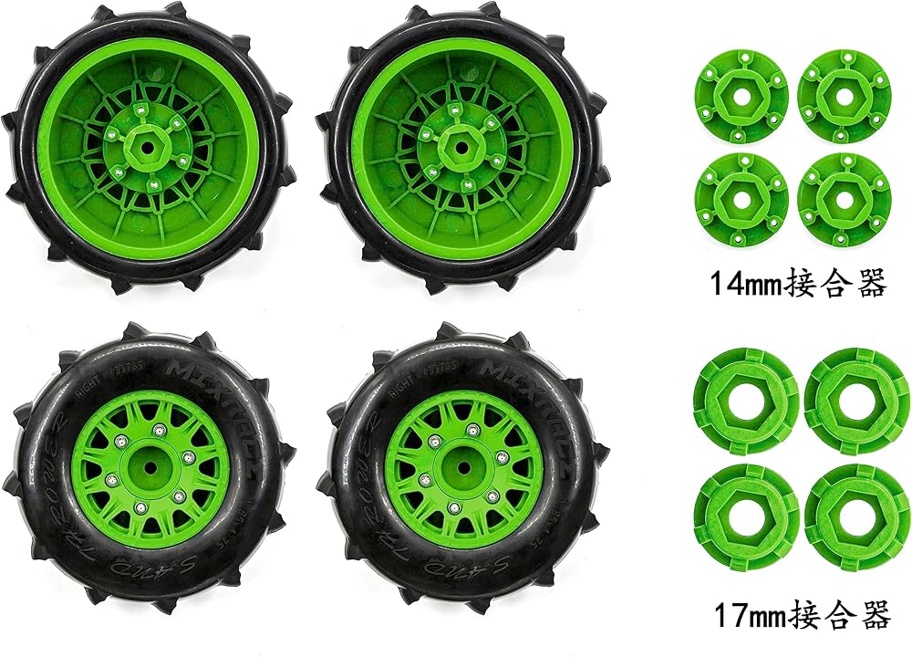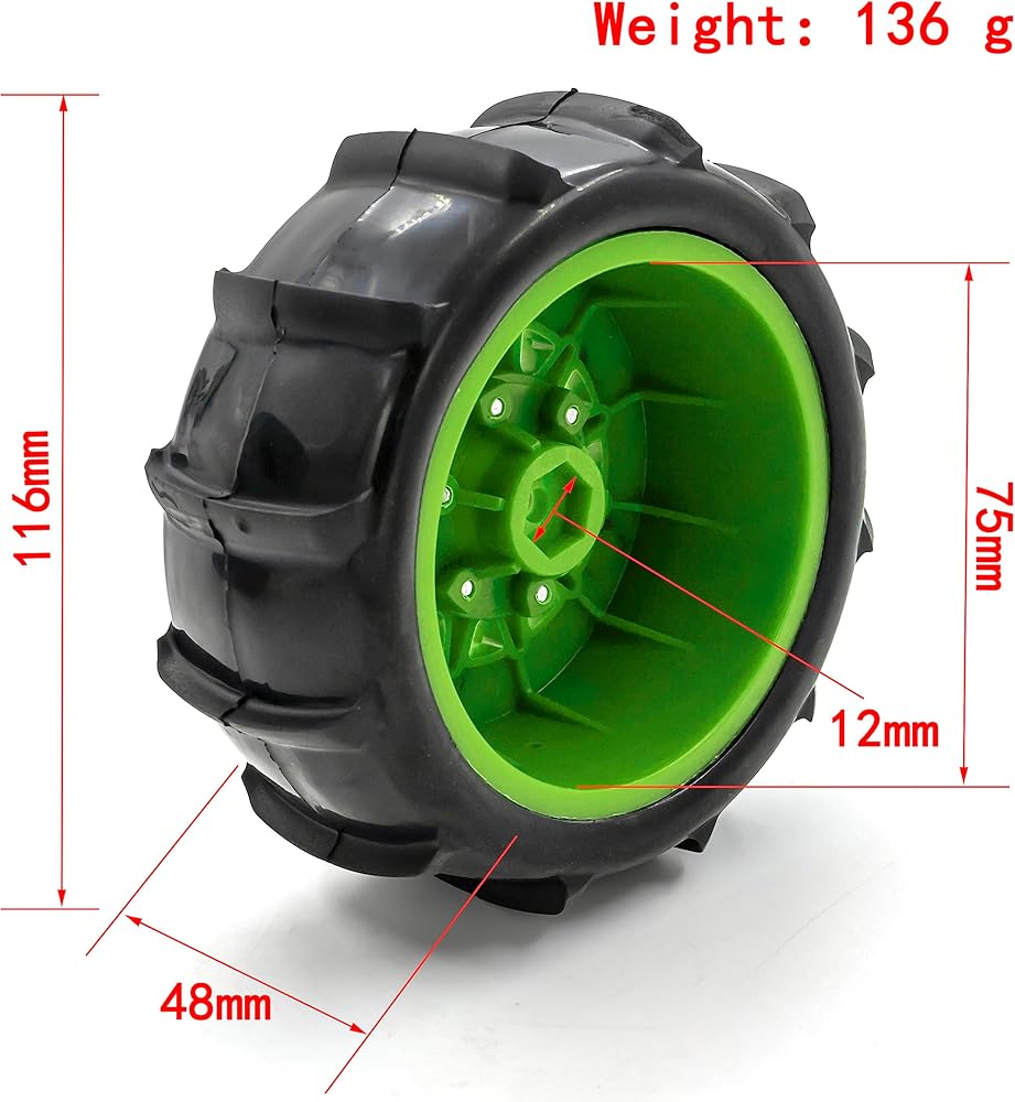 ⚡⚡【RC Wheels and Tires Size】: Tire Outer Diameter: 116mm(4.57in); Width: 48mm(1.89in); ; Wheels Diameter: 75mm(2.95in); Drive Hex: 14/17mm Hex(0.55/0.67in), Please make sure our RC tires and wheels are the correct sizes you are looking for, to avoid the returns products and save your time due to the inconsistent size.
