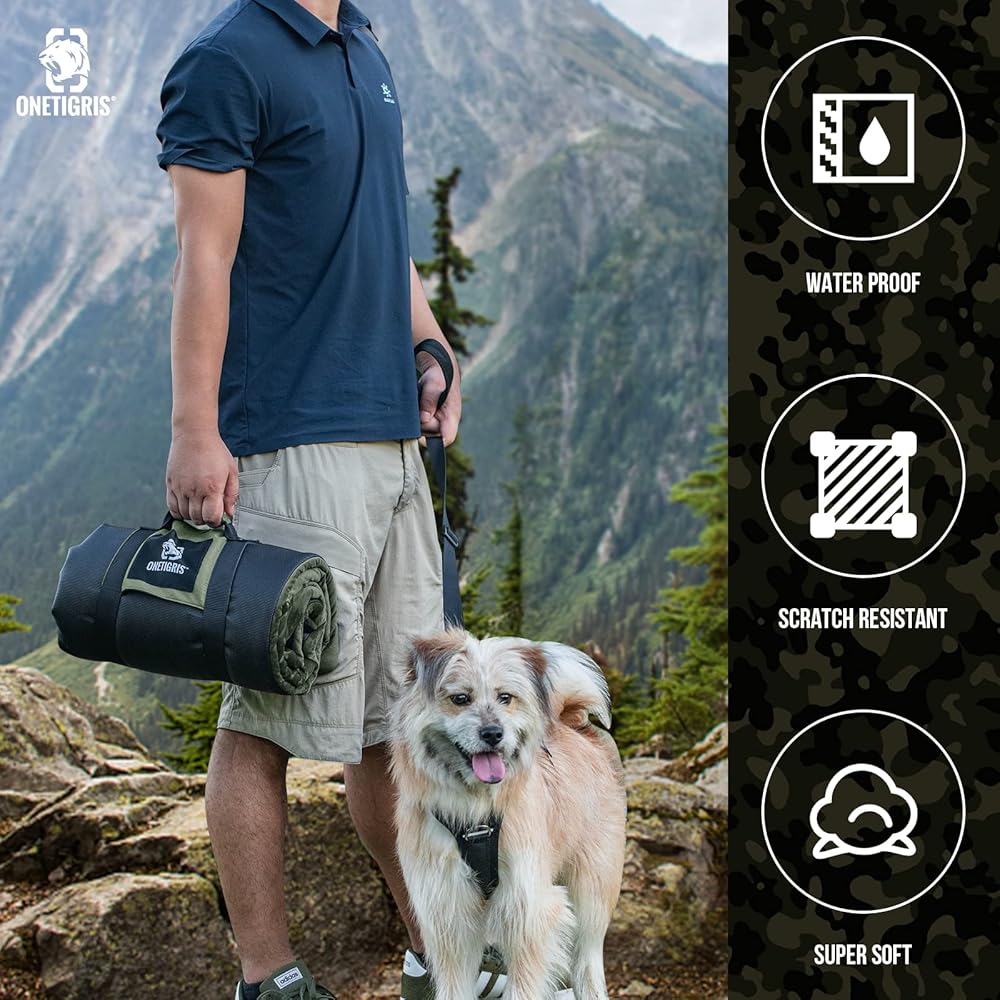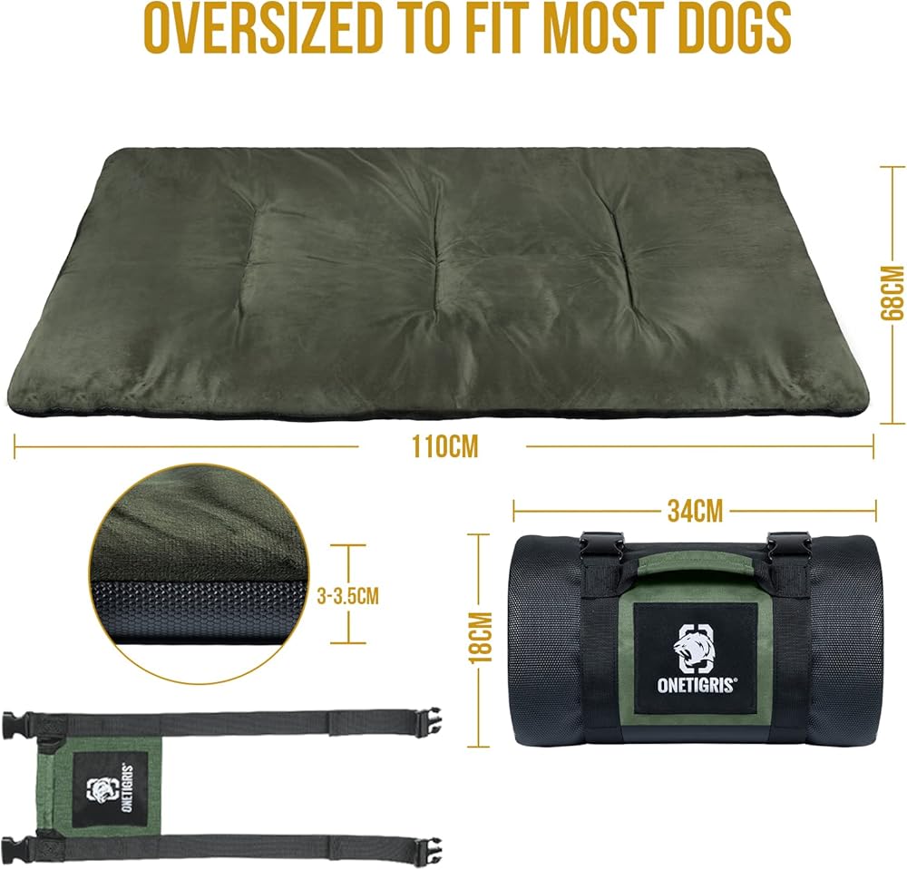 ONETIGRIS Travel Dog Bed - Portable, Washable, Waterproof Anti-Slip Dog Camping Bed, 3.6ft by 2.2ft Outdoor Indoor Bed Mat Cushioned Plush Warm Puppy Mattresses