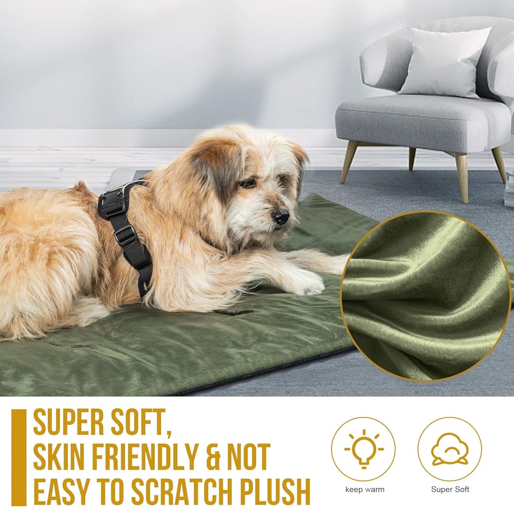 Premium Durable Dog Pad: Polyester cotton filling to provide comfort and warmth both indoors and out,the front side is skin-friendly, extra soft velvet, guaranteeing a excellent rest, and the layered polyester cotton filling wonderfully cushions the post-zoomie pet after a long day in the wild and indoor. No rustling:super quiet, sleep at ease