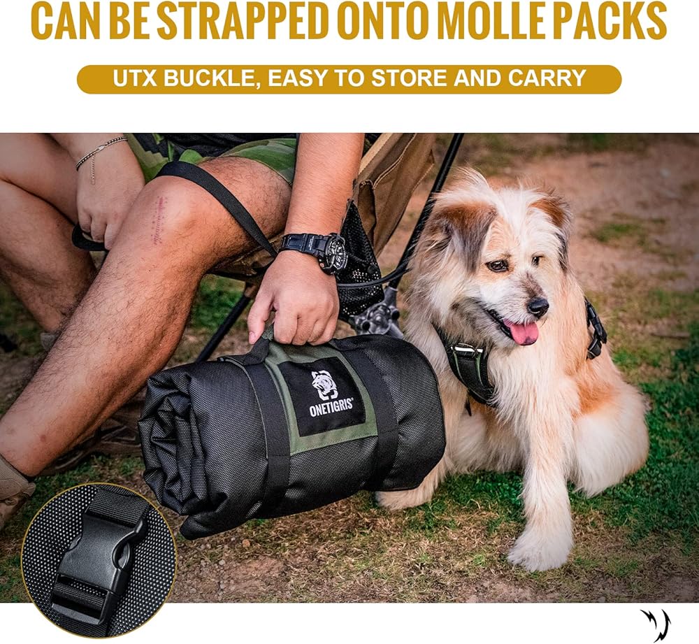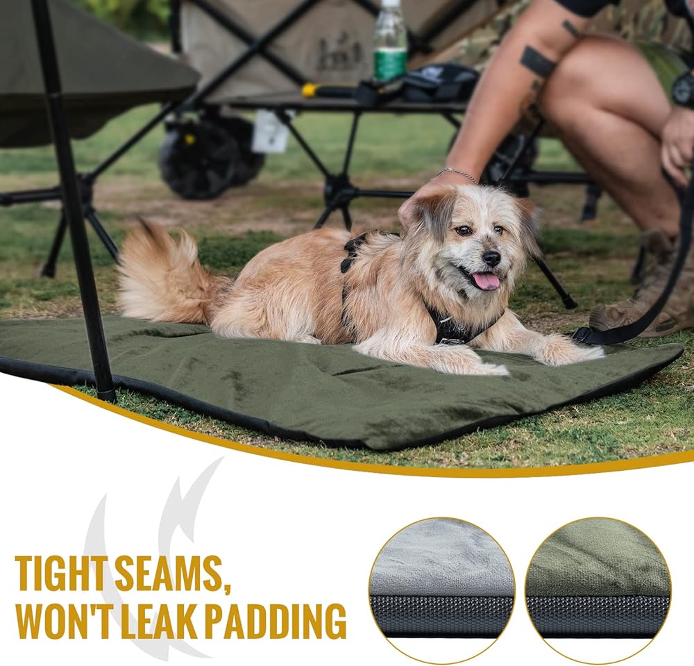 Portable Camping Dog Bed:Spreads out easily via UTX-Duraflex quick-release buckles and rolls up small for efficient storage; comes with a grab handle for hassle-free transportation.Suitable for travels, hiking, camping and other outdoor activities with your pet, as well as indoor use as a pet bed