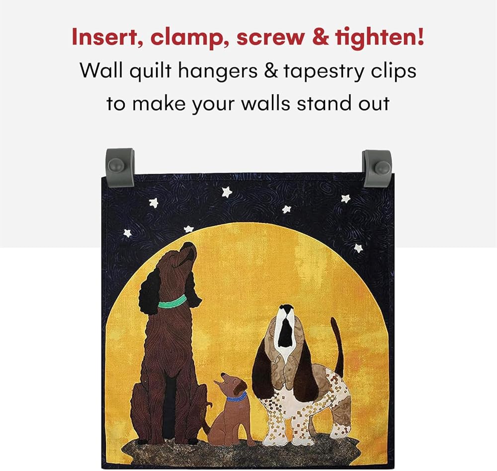 Blanket Hangers: Effortlessly hang blankets, quilts, or rugs with our quilt hanger; Simply insert your item into the clamp, tighten the knob. These rug hanger clips are easy to use and reliable