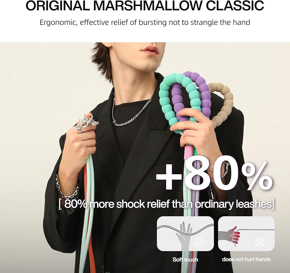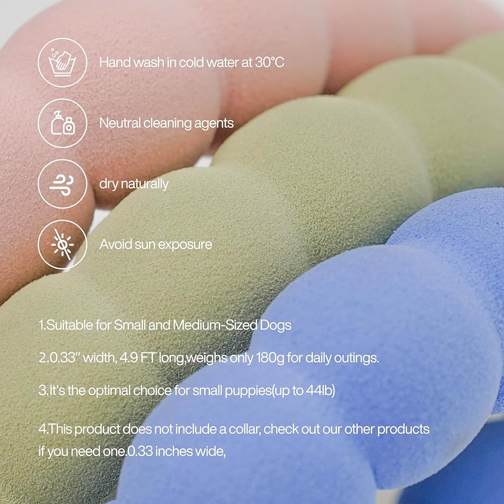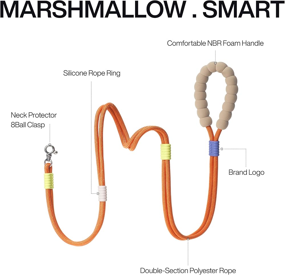 【Maogoublue Marshmallow SMART Series】Colorful macaroon colors and cute marshmallow shaped handle make you and your dog the center of attention in the park.0.33'' wide, 5 feet long leash can be changed into 5 leash styles, hand leash/waist leash/wrist leash/diagonal leash/P leash can be switched at will. It is the best choice for small and medium-sized dogs (up to 44lb/20kg) for all kinds of training and outdoor activities, everything is under your control. *This product does not include a collar, if you need a collar, please check our other products.