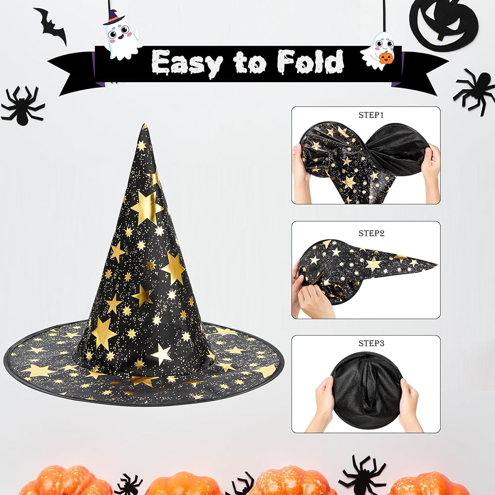 【Foldable & High Quality Material】Kids witch hat is made of 100% Polyester high quality fabrics,which is lightweight, wear-resistant and soft. This hat can be easily folded for storage and portability, and can easily put in your bag!
