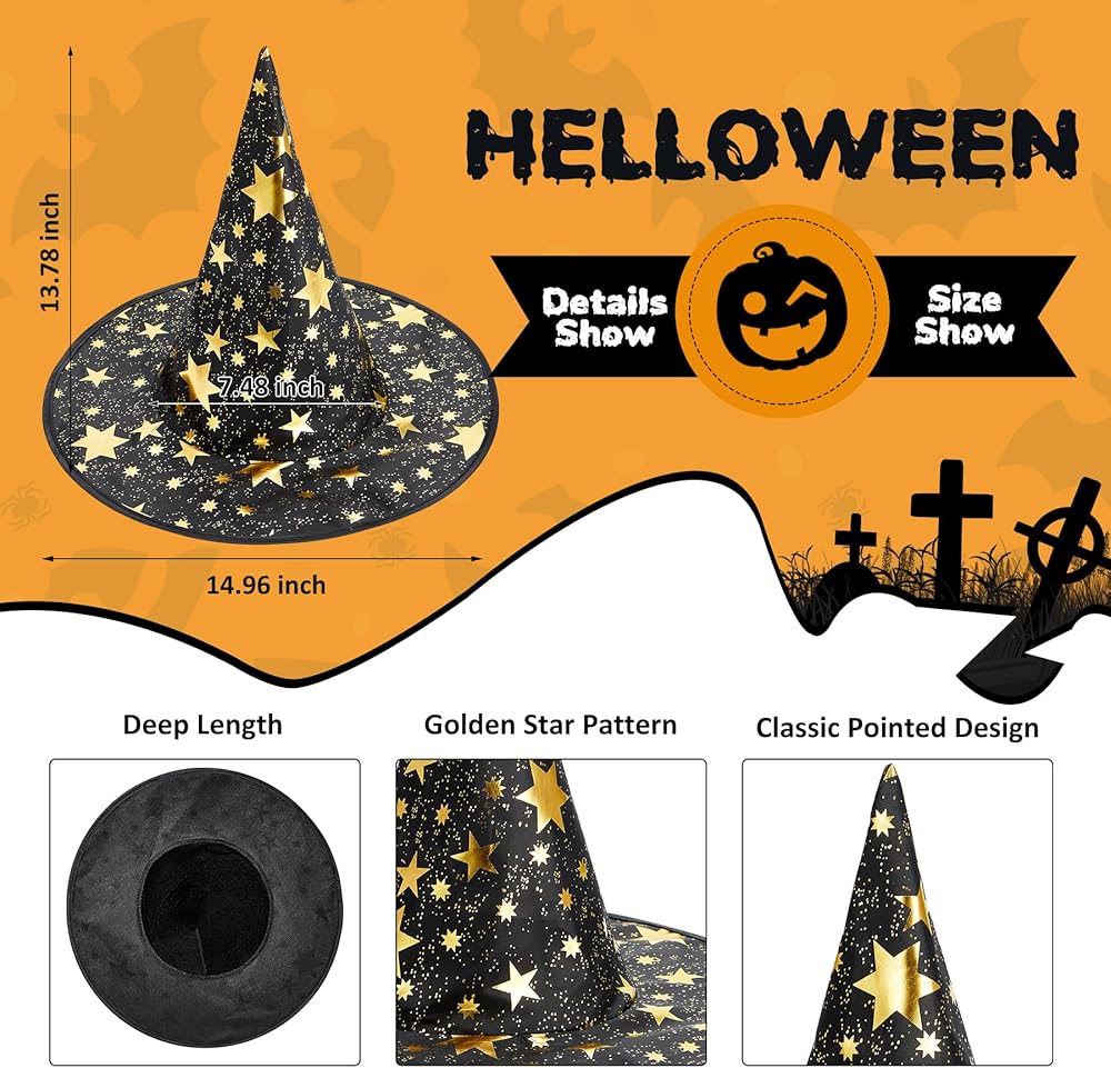 【Star Print Design】The star motif adds the festival atmosphere to this witches hat so you can shine like a star even on Halloween night.And will add the sense of family atmosphere by wearing this witch hat on Halloween.