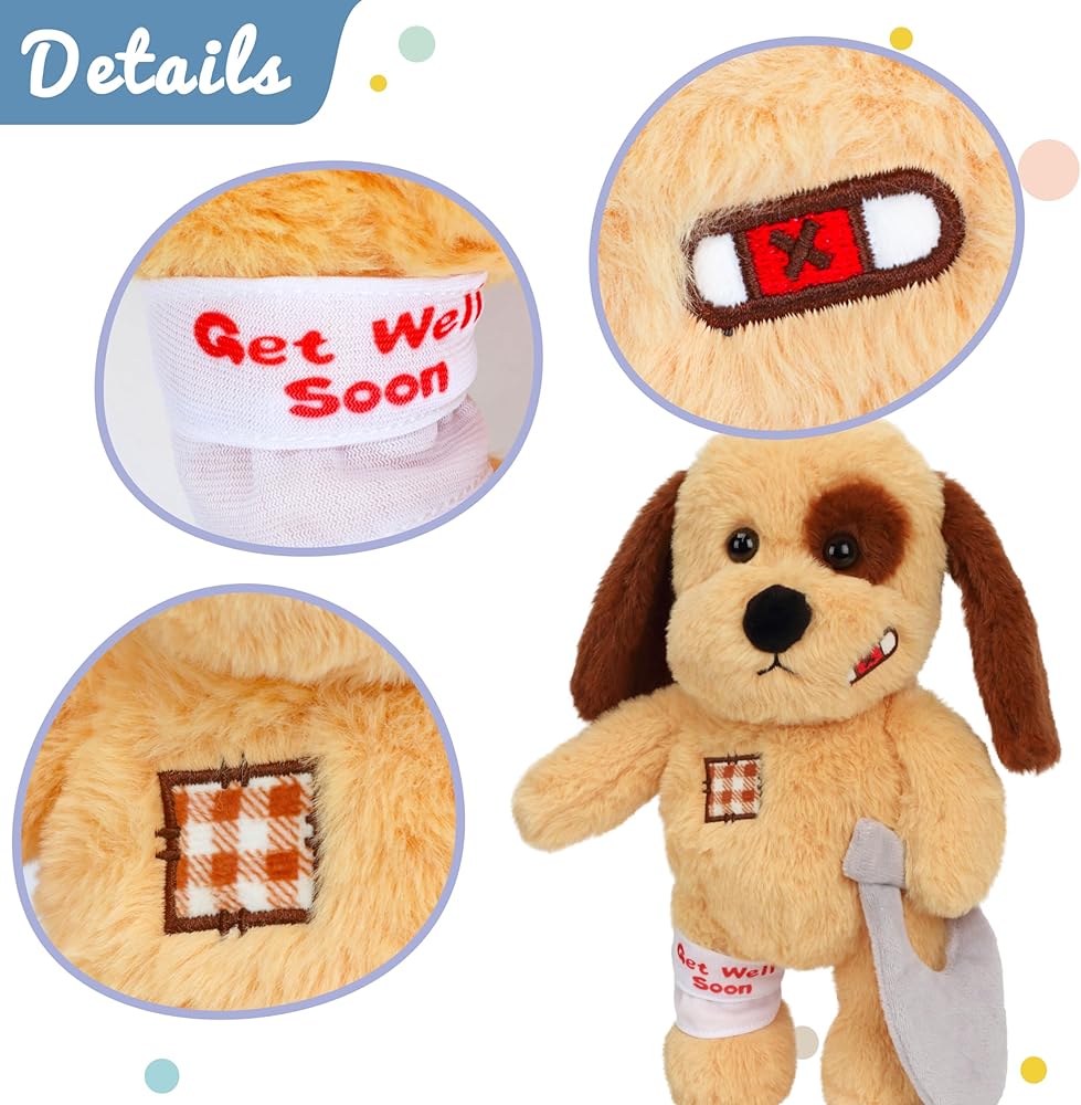 A PERFECT RECOVERY GIFT FOR KIDS: If you are looking for a recovery gift to comfort kid, our cute bear toy is a great choice. For sick children, they are very fragile at this moment, and they need a companion can accompany and comfort them to help alleviate their pain. It's a perfect way to express sympathy for hospital stays, emergency room visits, everyday illnesses, makes the ideal cuddle companion.