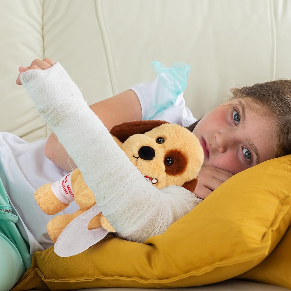 EXCELLENT FOR PRETEND PLAY GAME: Does your child enjoy playing house games? Or does your child enjoy taking care of patient? Many kids like pretend play game, for those one who like play doctors, our bear can be a suitable patient. It's a great companion for kids who enjoy taking care of others or who want to be a doctor or nurse, helping them learn how to take better care of others and teach children about empathy.