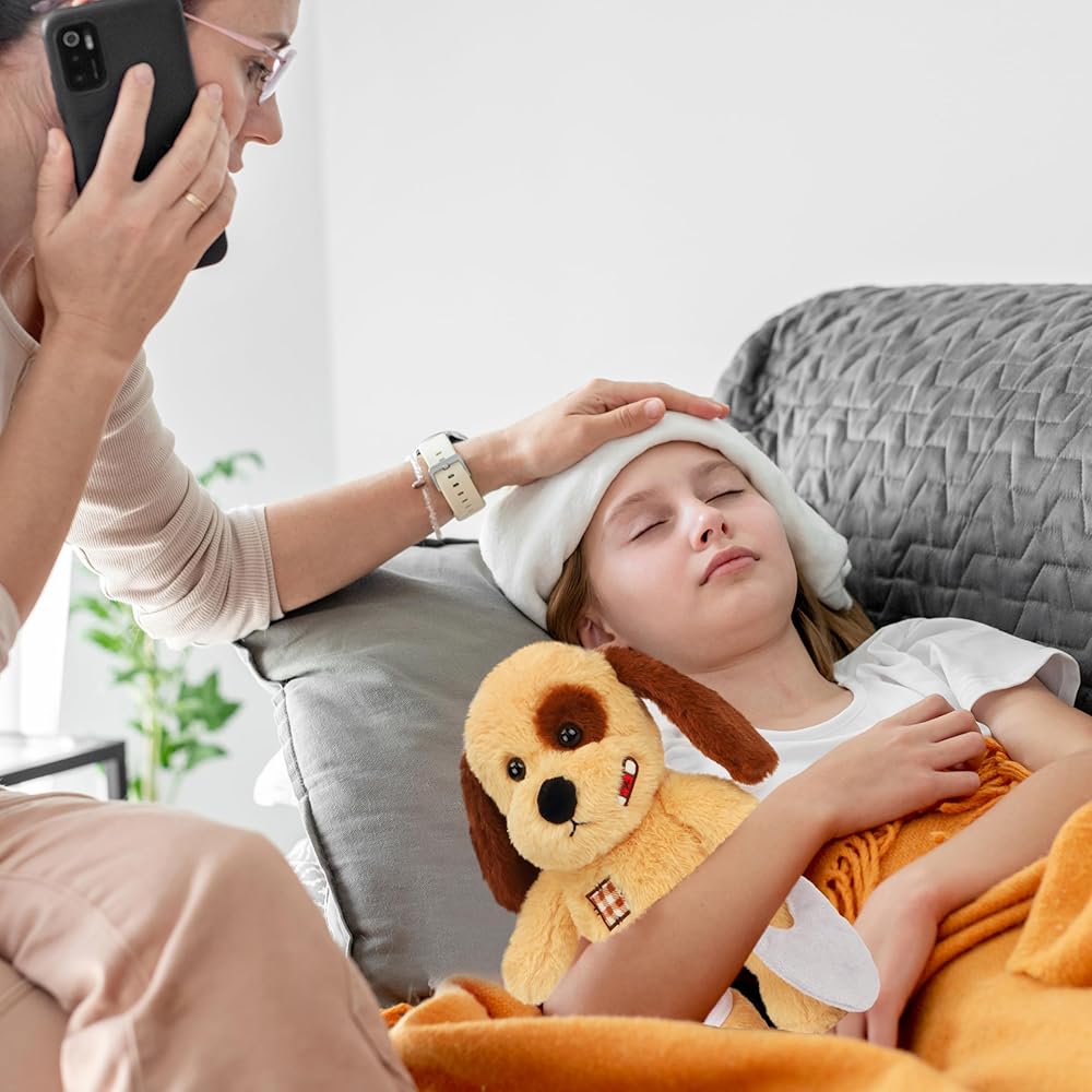 A CUTE IMAGE: This fuzzy stuffed bear is well-designed. It is made of ultra soft plush which has a awesome touch feeling, it won't hurt kids and add more enjoyment. As you can see from pics, it's a brown bear with fever, it's wearing a fever reducing patch and using a thermometer to measure body temperature. Hope it can cooperate well with treatment and get well soon.