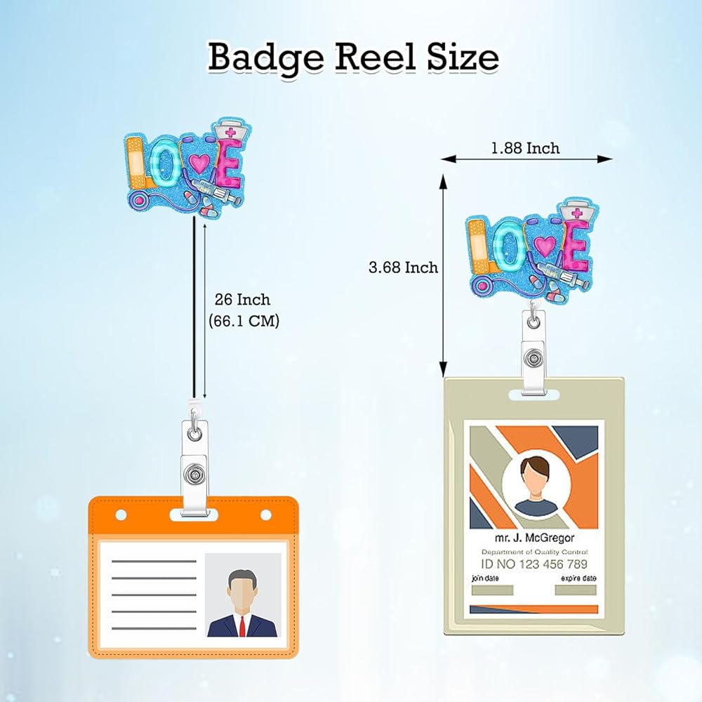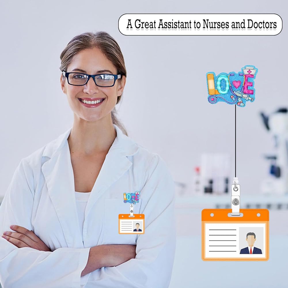 Love Nurse Badge Reel Retractable Funny Nursing Badge Holder with ID Clip Accessories Medical Assistant RN CNA Name Badge Clip Doctor Hospital Acrylic Badge Reels ID Name Card VC71n