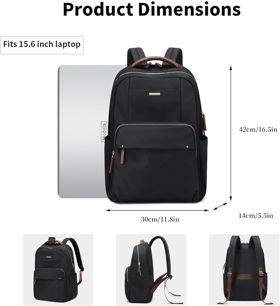 💗【Stylish & Functional】- Elevate your everyday style with our laptop backpack for women. Available in Pale Grey, Black, and Apricot, the backpack features a sleek design and a roomy interior to fit your daily essentials. Measuring 15.4" x 4.7" x 10.6"/39 x 12 x 27cm, it's perfect for work, travel, college, and so on.