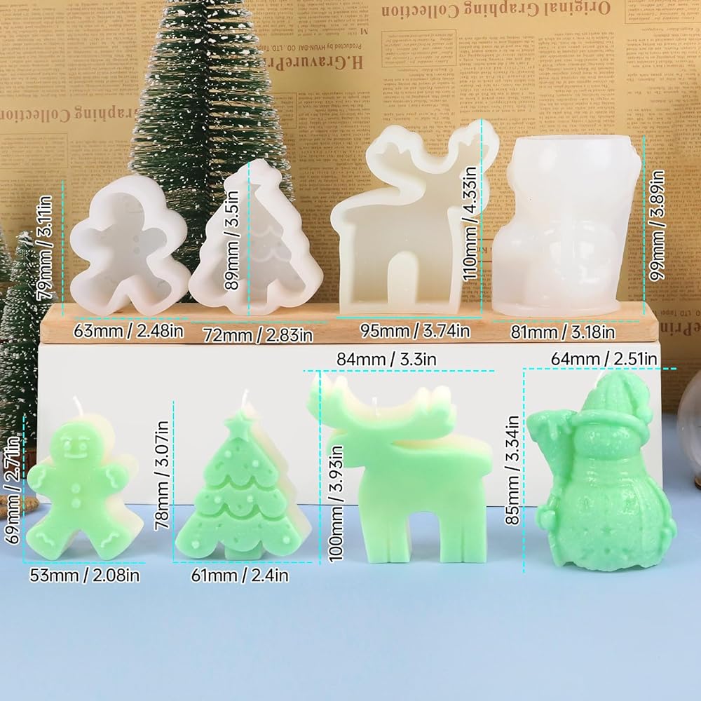 TOAUTO 4Pcs Christmas Themed Candle Silicone Mold, Elk, Snowman, Gingerbread Man Christmas Tree for Candle Making Aromatherapy Wax Epoxy Resin Casting Soap Christmas Party Decor