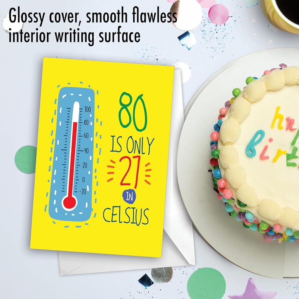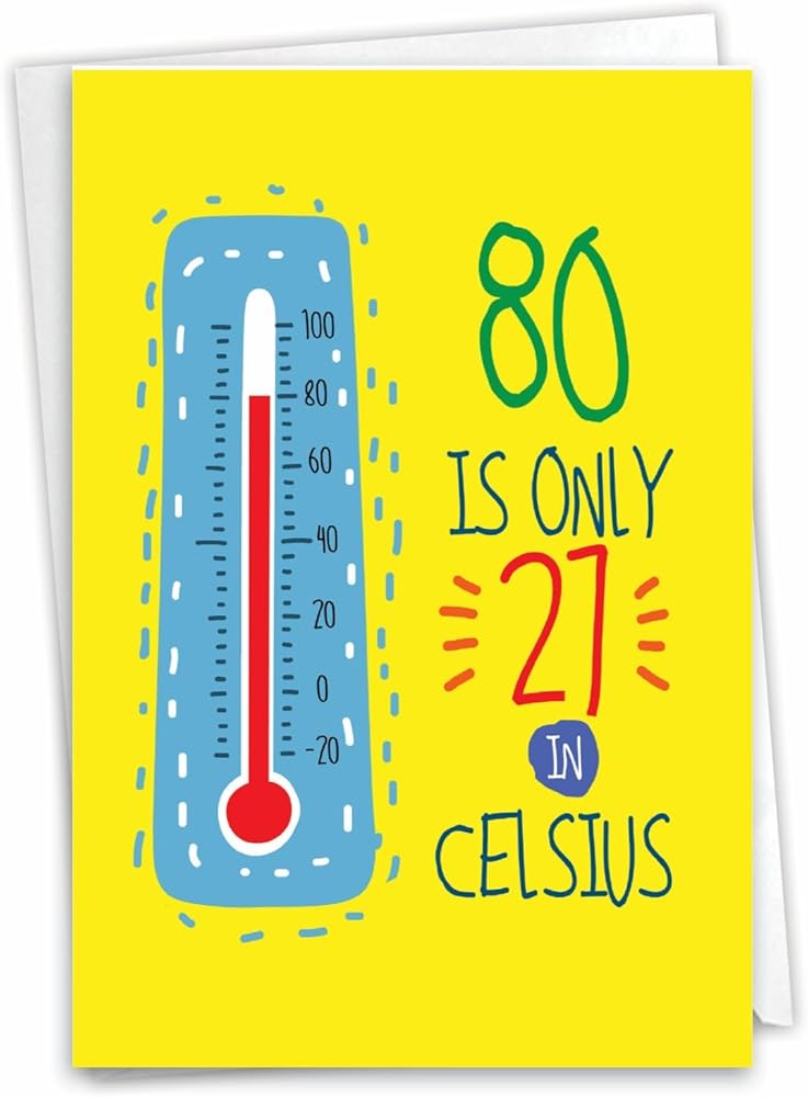INSIDE GREETING: "That makes you 53 years younger! Happy Birthday!" COVER - 80 is only 27 in Celsius
