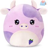 Adorable and Original Design: Our cute cow plushie cmbines a cute cow with vibrant grape-themed details, featuring a purple color palette. It features a pair of cute calf horns and ears, a smiling appearance and delicate grape embroidery. All will fall in love with it at first sight.