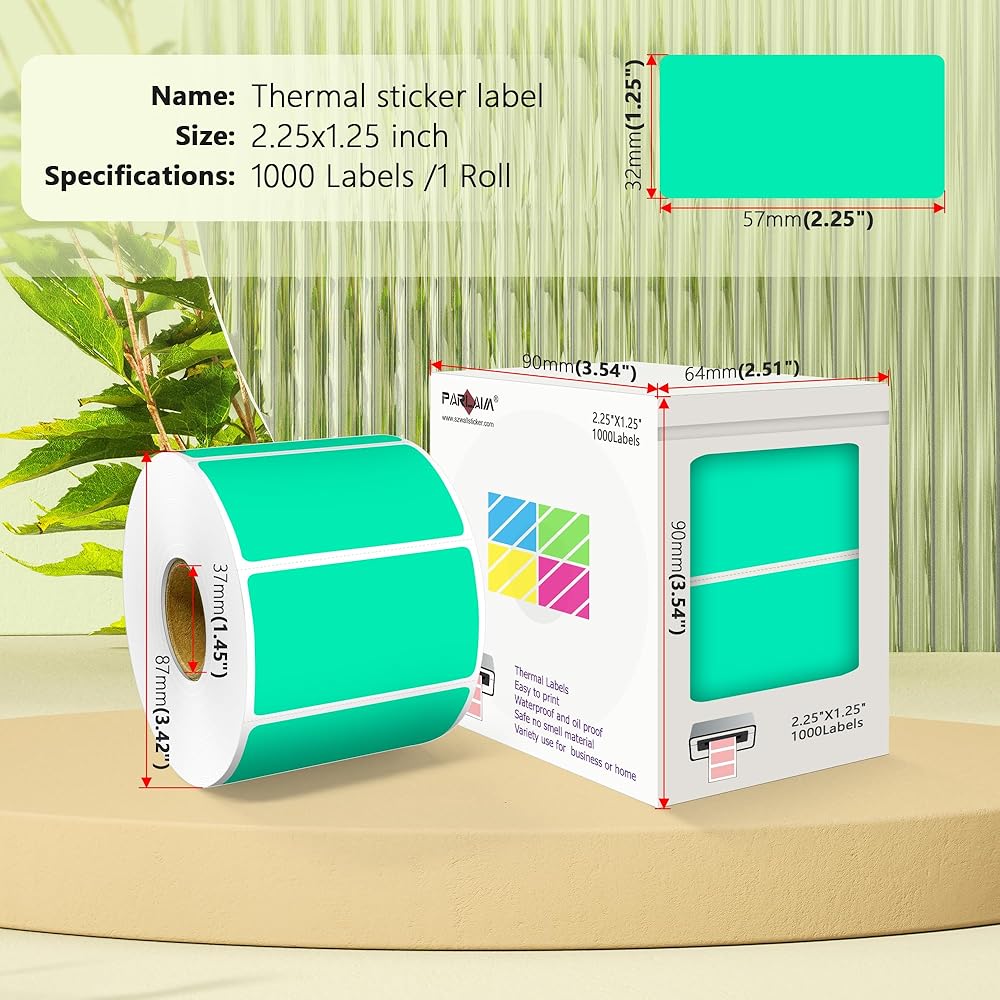 2.25 x 1.25 Inch Thermal sticker printer label with clear printing, strong self-adhesive, waterproof, oil-proof, anti-scratch, writable. Good assistant in your small business and daily life.