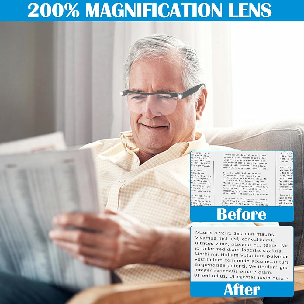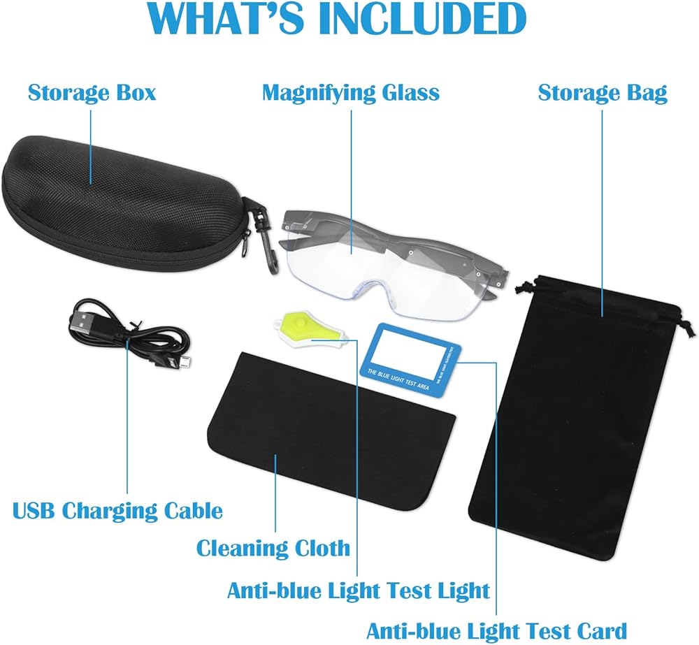 [Blue Light Blocking] Blue light blocking technology is built into these magnifying glasses, which helps protect your eyes from the harmful blue light emitted by electronic devices and artificial light sources. Blue light can cause eye strain, headaches, and disrupted sleep patterns, so this feature is essential for those who spend a lot of time in front of screens or under artificial lighting.