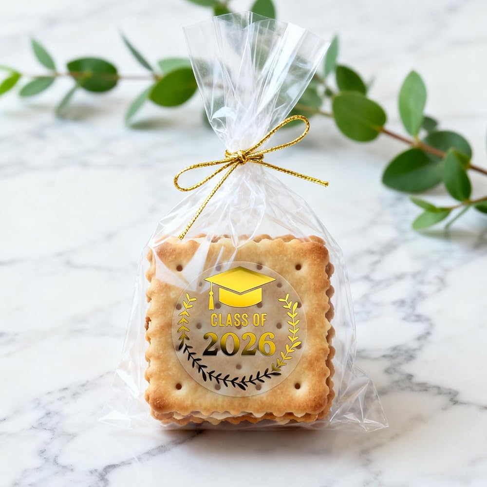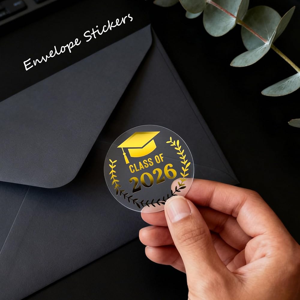 100 Pack Class of 2026 Graduation Stickers – Transparent Gold Foil Labels for Graduates – Clear Foil Seals for Invitations, Envelopes & Party Favors (Class of 2026 Gold)