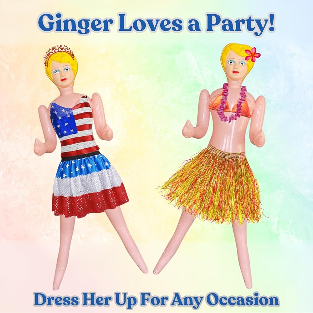 UNWRAP THE FUN: Ginger is an inflatable 59" blow-up doll party companion, perfect for adding a touch of humor, spontaneity, and surprise to any event - especially a bachelor party! She's not just a decoration, she can be one of your quirky gag gifts for a friend or family member! Make her the party's highlight that guarantees a memorable experience. Perfect for party gifts for adults!