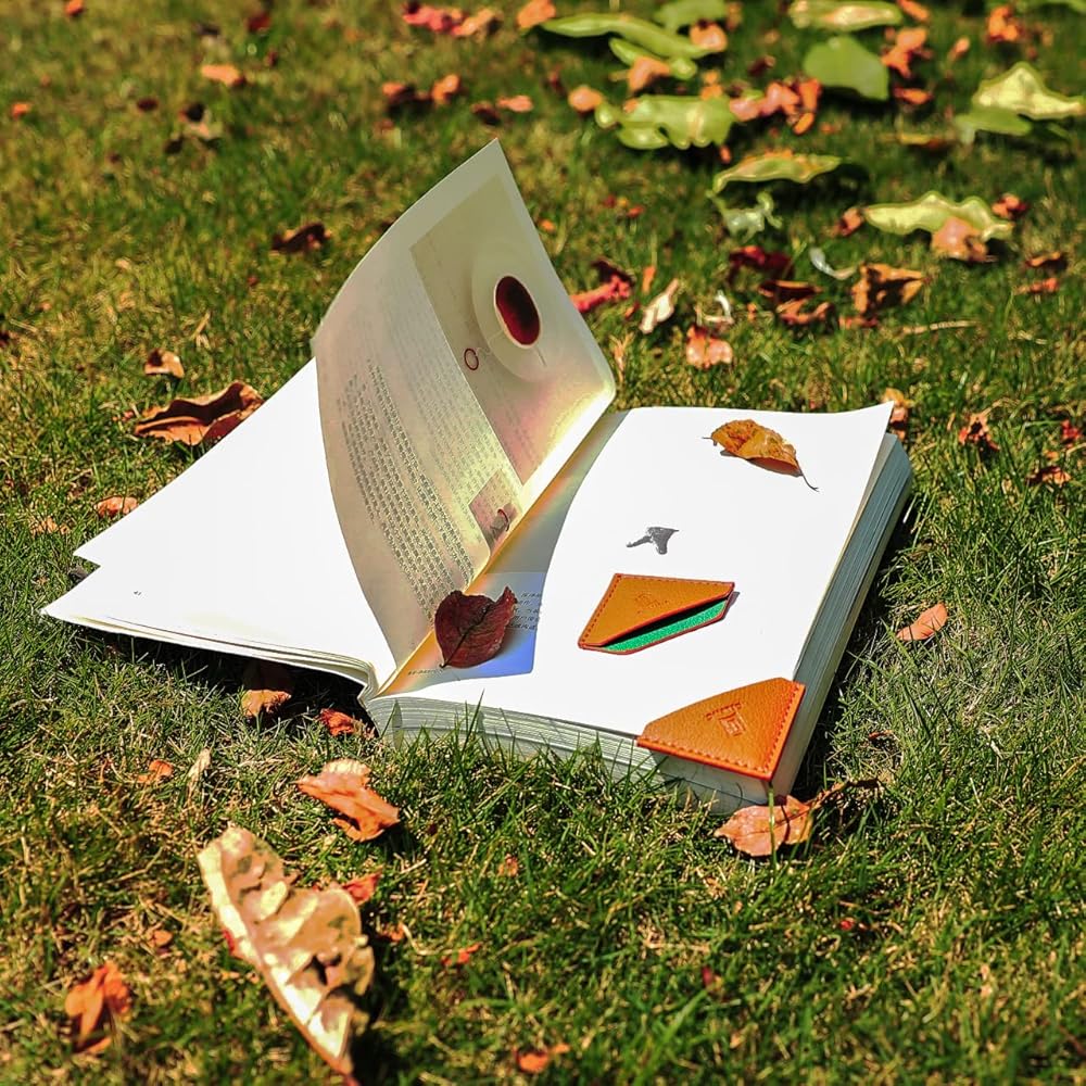 【HIGH QUALITY MATERIAL】Each corner page marker is made of high quality cruelty-free Vegan leather, no bad smell. The touch of leather is as comfortable as leather. Each edge adopts the same color of edge oil to make every corner of the bookmark very smooth and exquisite. This is not a process that all brand bookmarks will do. Our bookmarks are durable designed with fine sewing method, not easy to loosen and wear, and can be used for a long time.