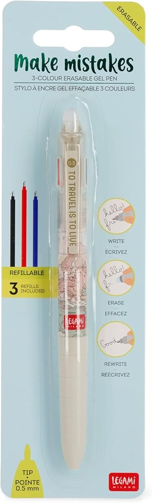 There is only one way to learn: try, make mistakes and try again. Mistakes are the best masters. Just know how to recognize and correct them with the Erasable 3 Colours Gel Pen with Flowers by Legami. Thanks to black, red and blue thermosensitive inks you can really combine all the colours: the eraser end will correct every type.