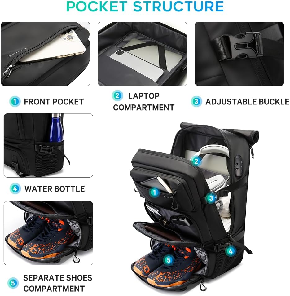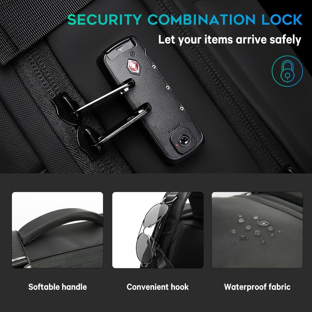 【Anti-Theft Backpack】 The travel backpack is equipped with a smart secure lock, which is made of high-strength zinc alloy with a solid, compact body to prevent theft and well protect all your valuables safely.