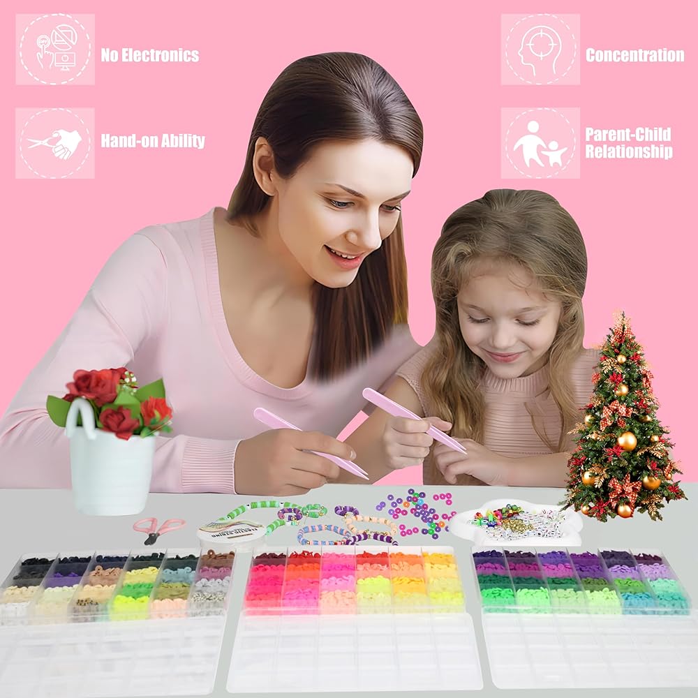 【Make your child move away from electronics】 bracelets, necklaces, earrings, anklets, key chains, pendants, DIY crafts, you can make cute, which is wonderful and fun for children, who will do hours to complete their creativity and stay away from cell phone electronic devices.