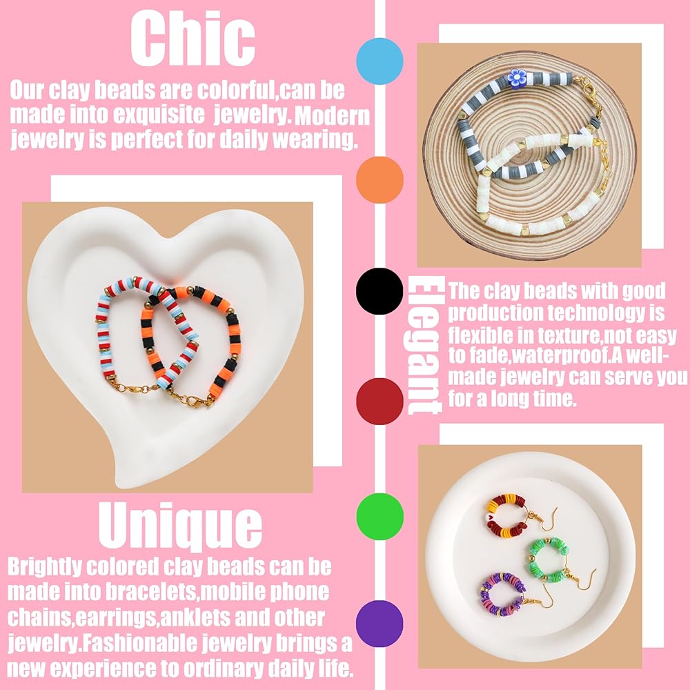 【High quality beads】Clay beads are made of polymer clay, light weight and durable, environmentally friendly, non-toxic, odorless, brilliant colors, not easy to fade, gold beads with metal plating process, smooth surface, glossy, not easy to fade, we strictly control the production requirements to ensure that the beads have no deformation problems.