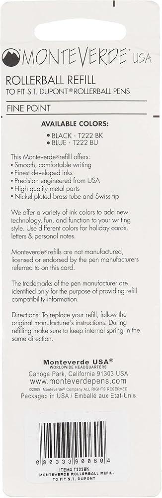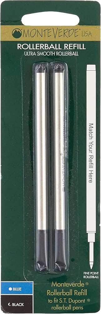 Monteverde USA Rollerball Refills to Fit S.T. Dupont Rollerball Pens, Fine Point, Black, 2-Pack, Smooth and Reliable Writing Performance
