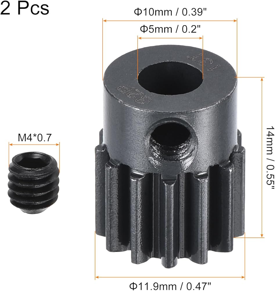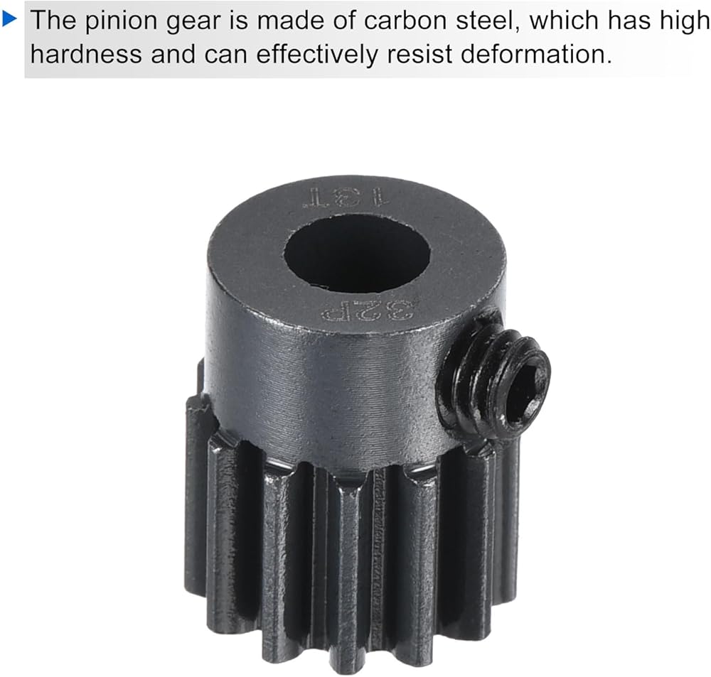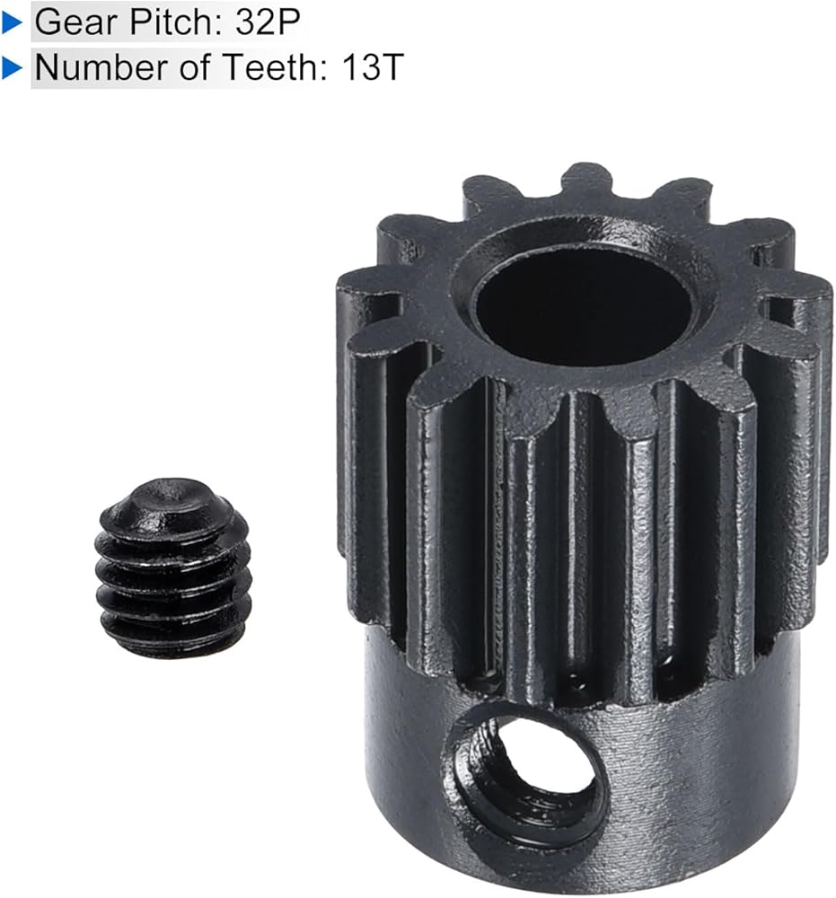 Steps of installation: 1. Slide the RC Hardened Pinion Gear onto the motor shaft; 2. Align the teeth with the corresponding gears it will mesh with (such as the spur gear); 3. Ensure that the gear is securely seated on the shaft.