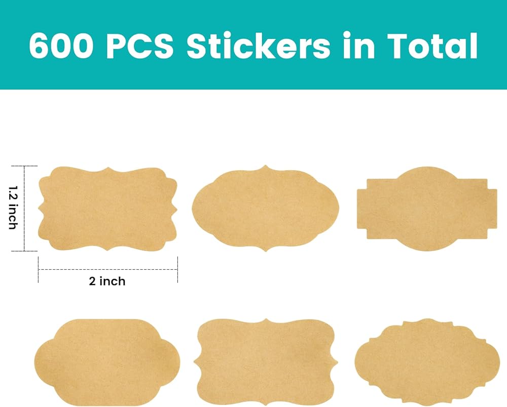 600 قطعة من ملصقات ملصقات كرافت، 2 × 1.2 بوصة ملصقات فارغة ذاتية اللصق صغيرة لتعليب الجرار والزجاجات وبطاقات الهدايا وهدايا العطلات وحاويات تخزين الطعام