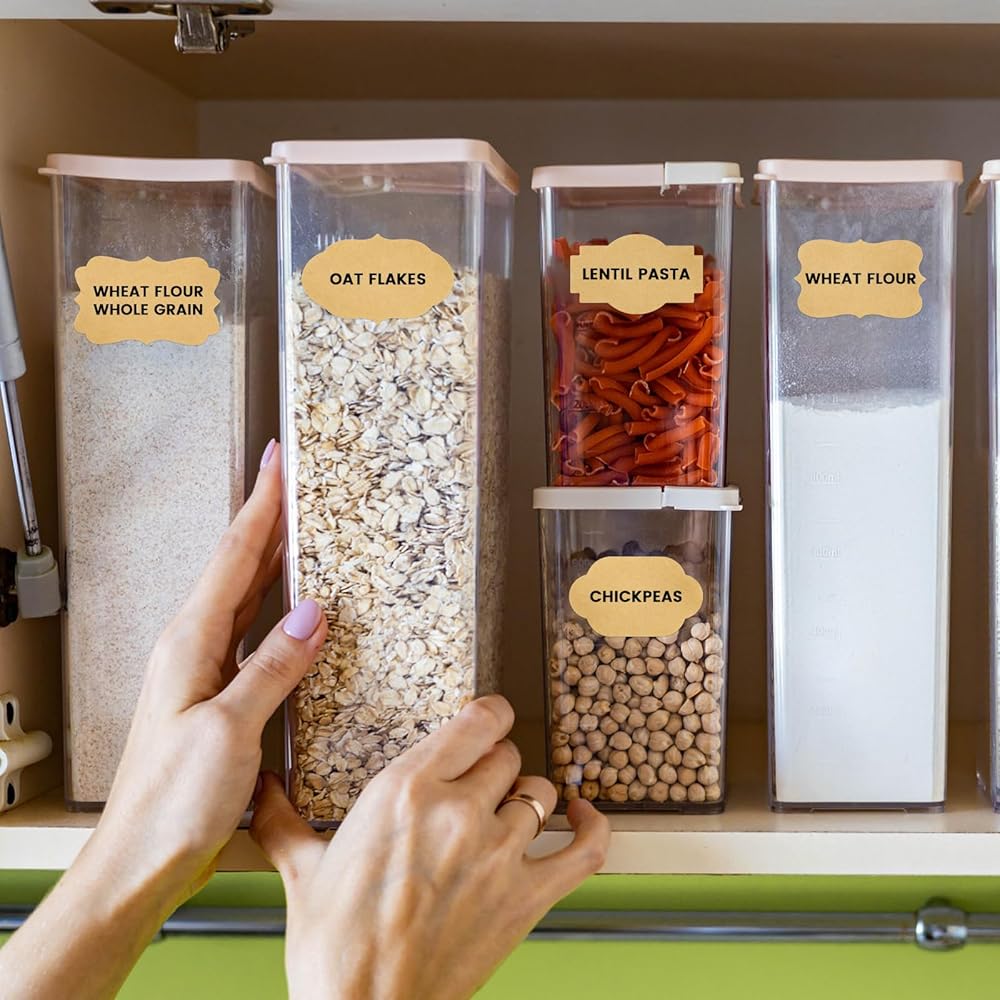 Still bothered by the various bottles and jars stored in your cupboards? Our kraft food storage labels will help you reduce the mess, keep it organized and allow you to quickly find the items you want.