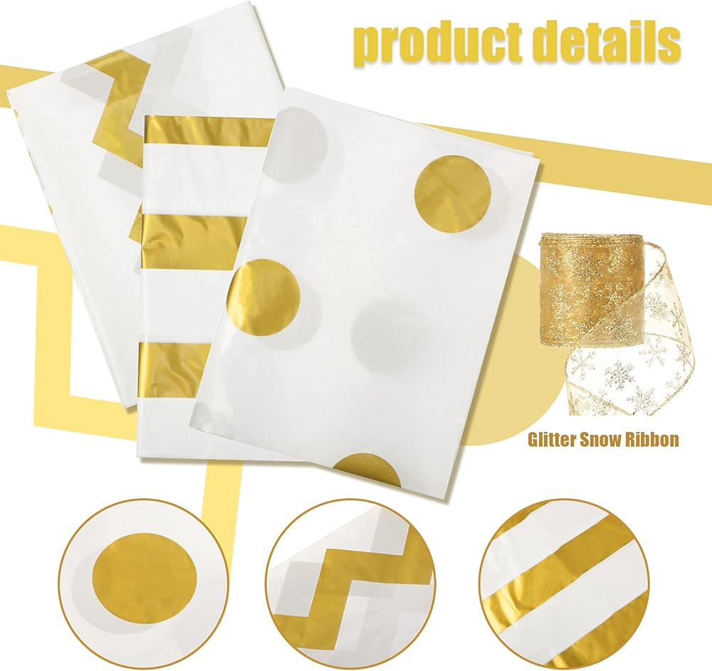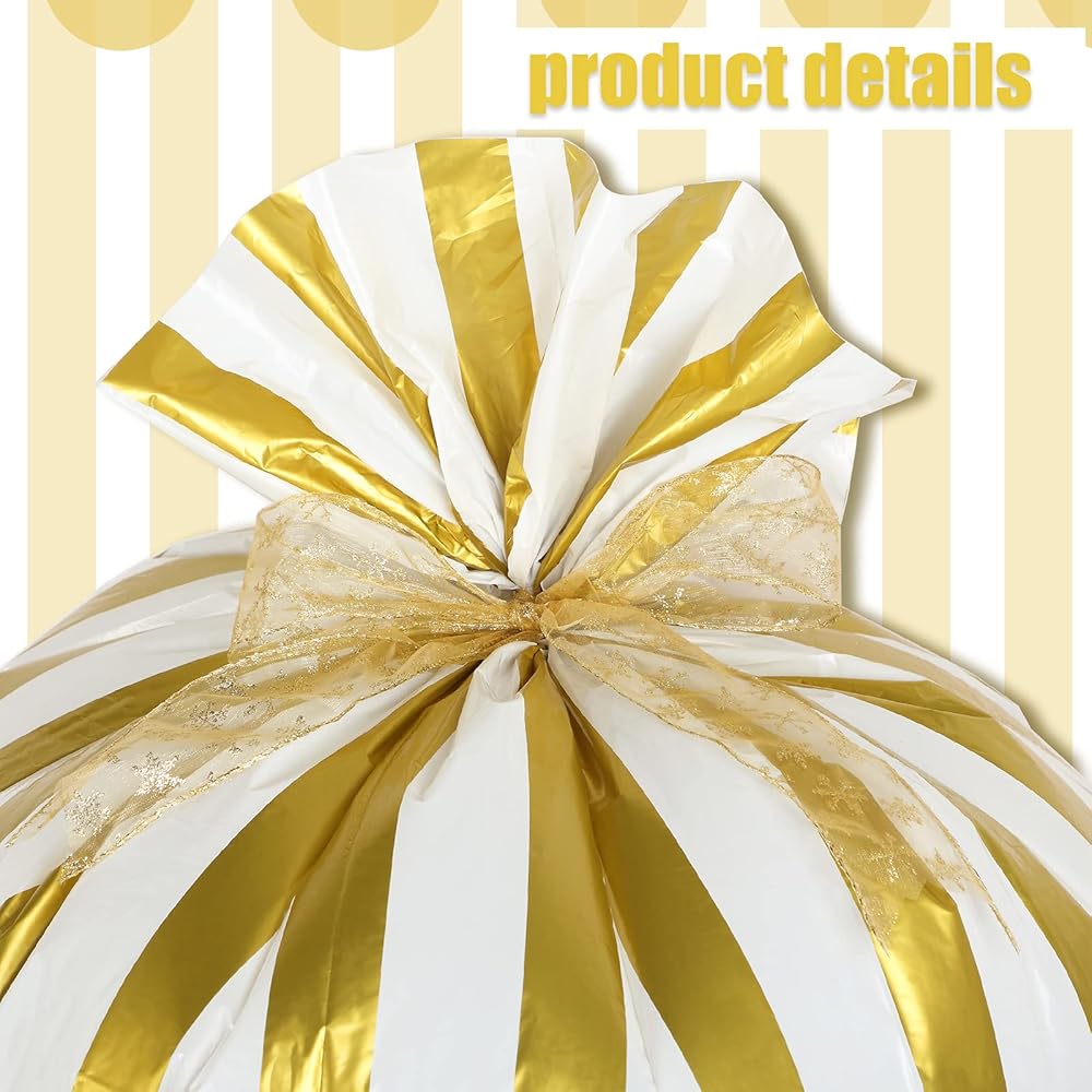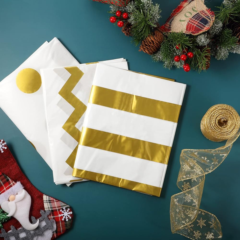 Trendy designs: these large wrapping bags are designed with 3 classic elements, such as chevron, round dot and stripe, simple pattern with gold color, elegant and chic, which can be applied as goodie bags, party favor bags, event bags, gift bags, or merchandise bags