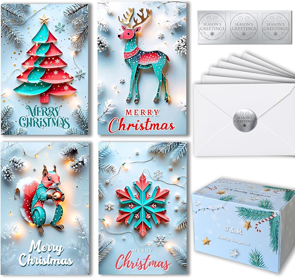 50 Christmas Cards, blank on the inside, paper quality of 300 GSM (14PT Card Stock)