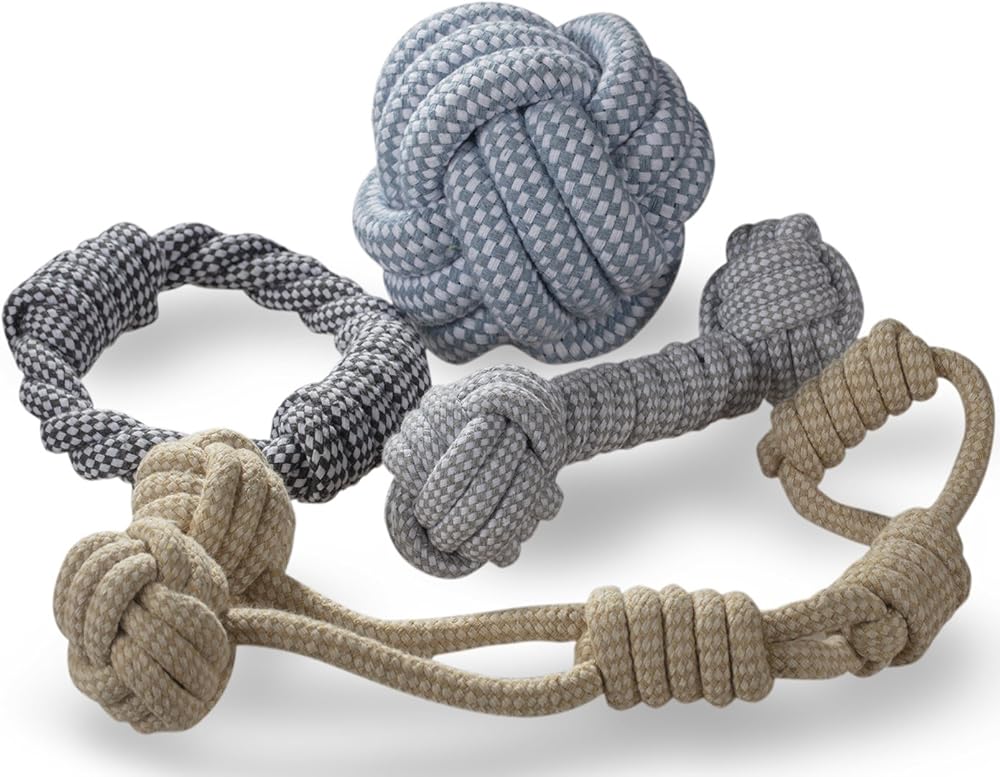 Paws & Pals Dog Chew Toys, Indestructible Cotton Braided Rope Toy, Best for Teething Puppy or Large Breed Aggressive and Heavy Chewers, Dogs Play Fetch, Heavy-Duty, Variety of Sizes & Styles