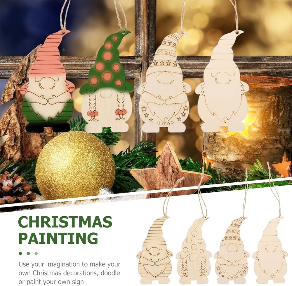 Holiday Themed Ornaments: These wooden gnome pendants are beautifully carved and cater to Christmas themes and party vibes. DIY painting decorations are suitable as decorations, tags, you can them on the wall, door, Christmas tree for more fun
